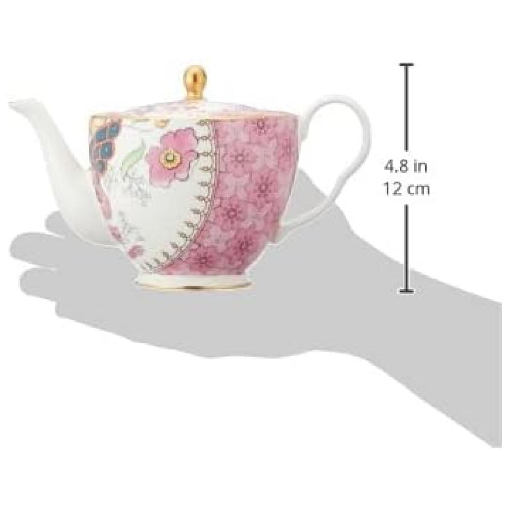 Bule de Chá Elegante e Sofisticado com Capacidade de 370mL e Material de Porcelana Wedgwood Branco e Rosa