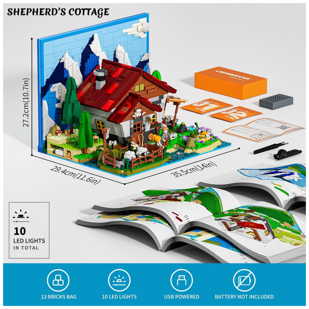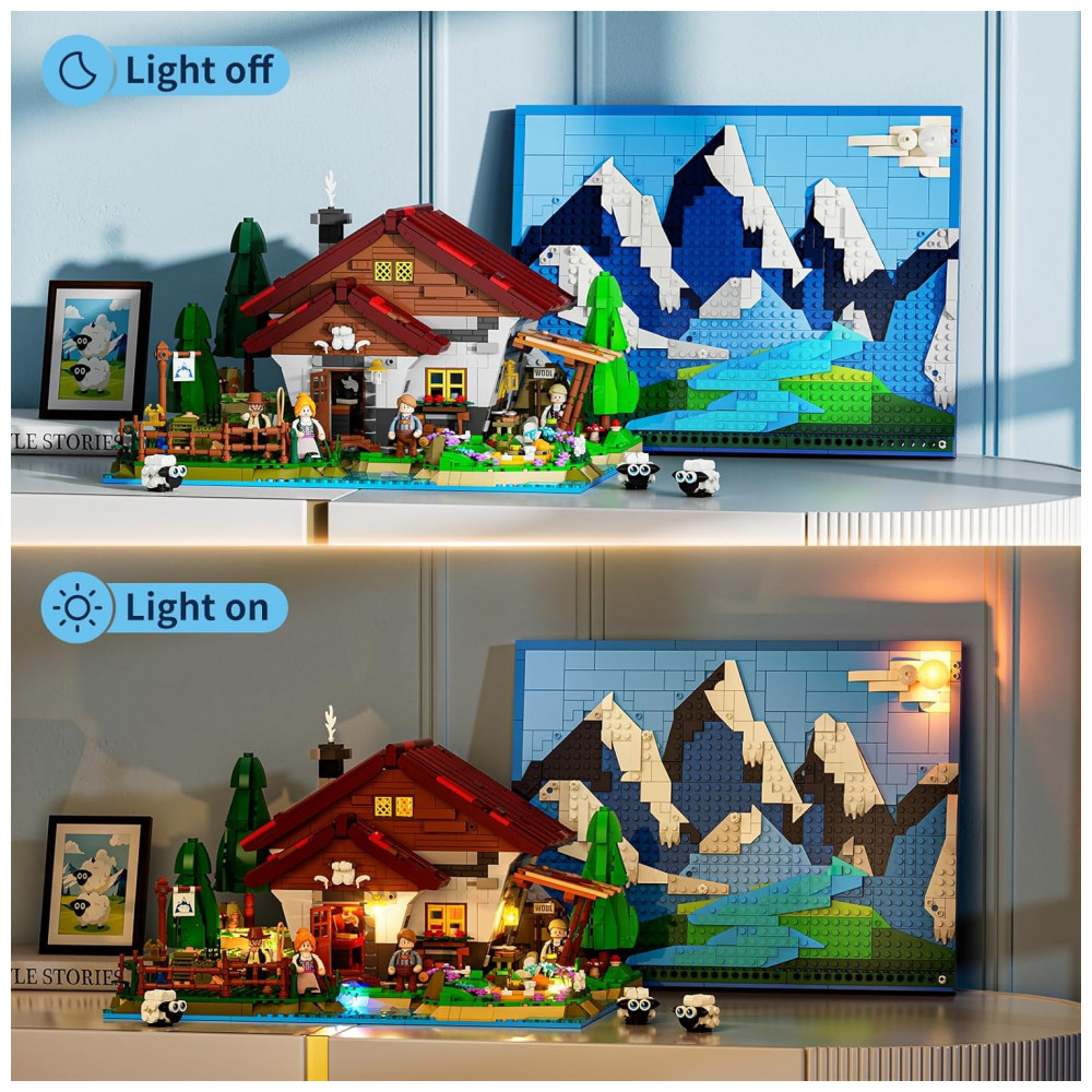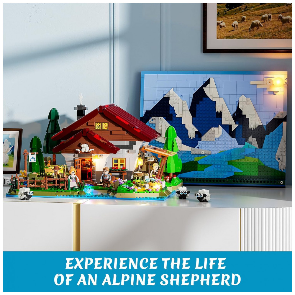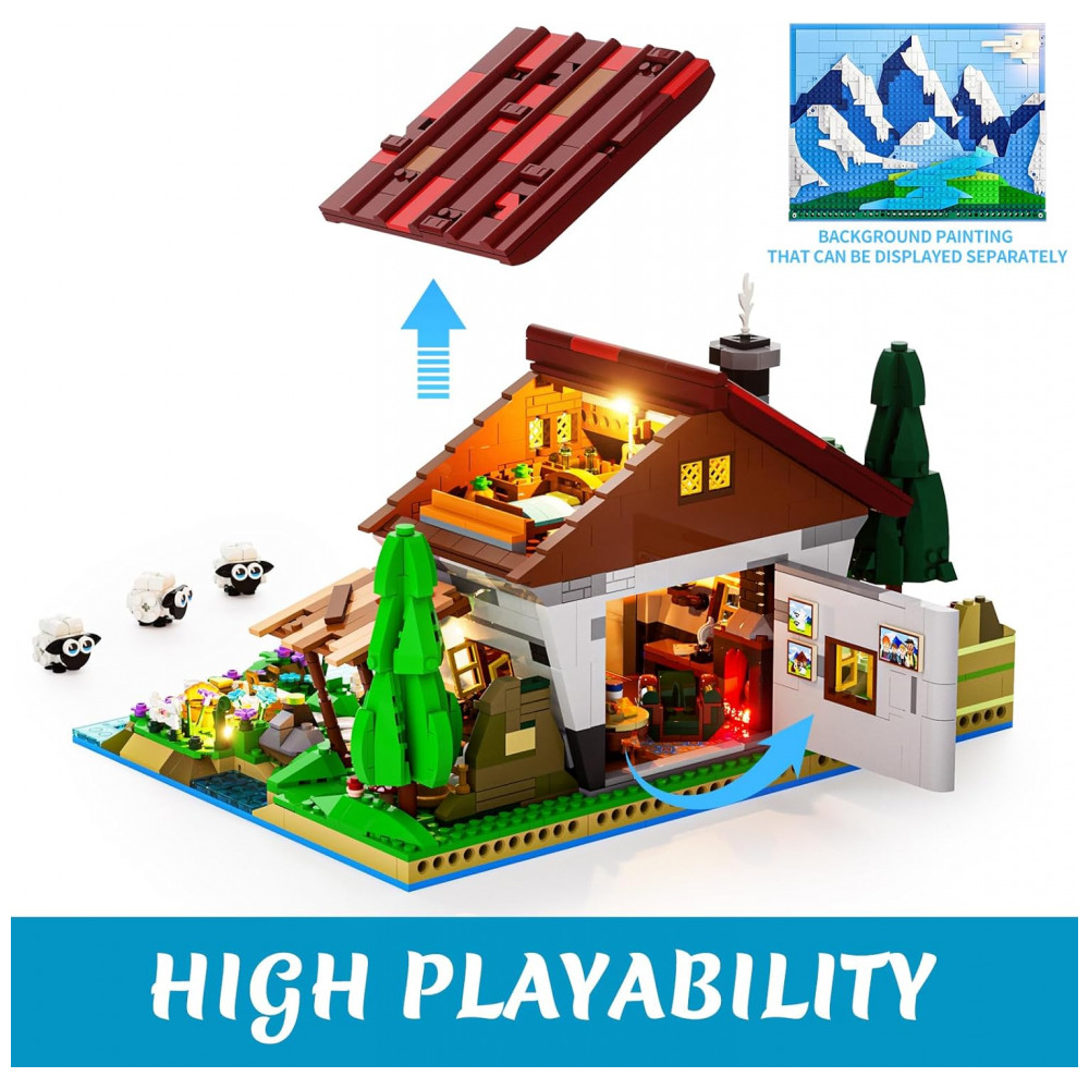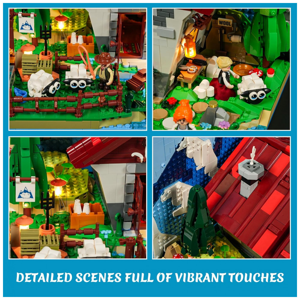 Cottage Alpino com Ovelhas Lumibricks com iluminação LED 2265 peças cenário rural para exposição