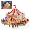 O sistema de iluminação destaca fontes quentes piscantes e luzes quentes internas que contrastam com o cenário invernal, utilizando peças transparentes para amplificação de efeitos luminosos. Inclui manual de instruções e kit LED para montagem sequencial.