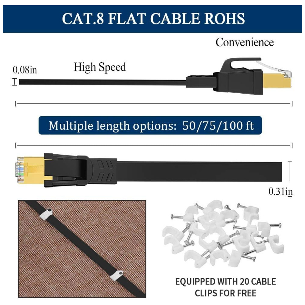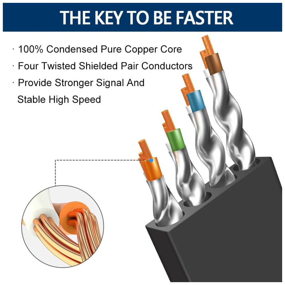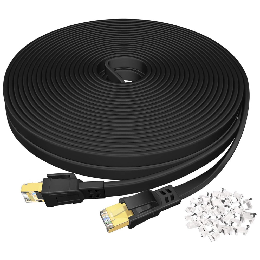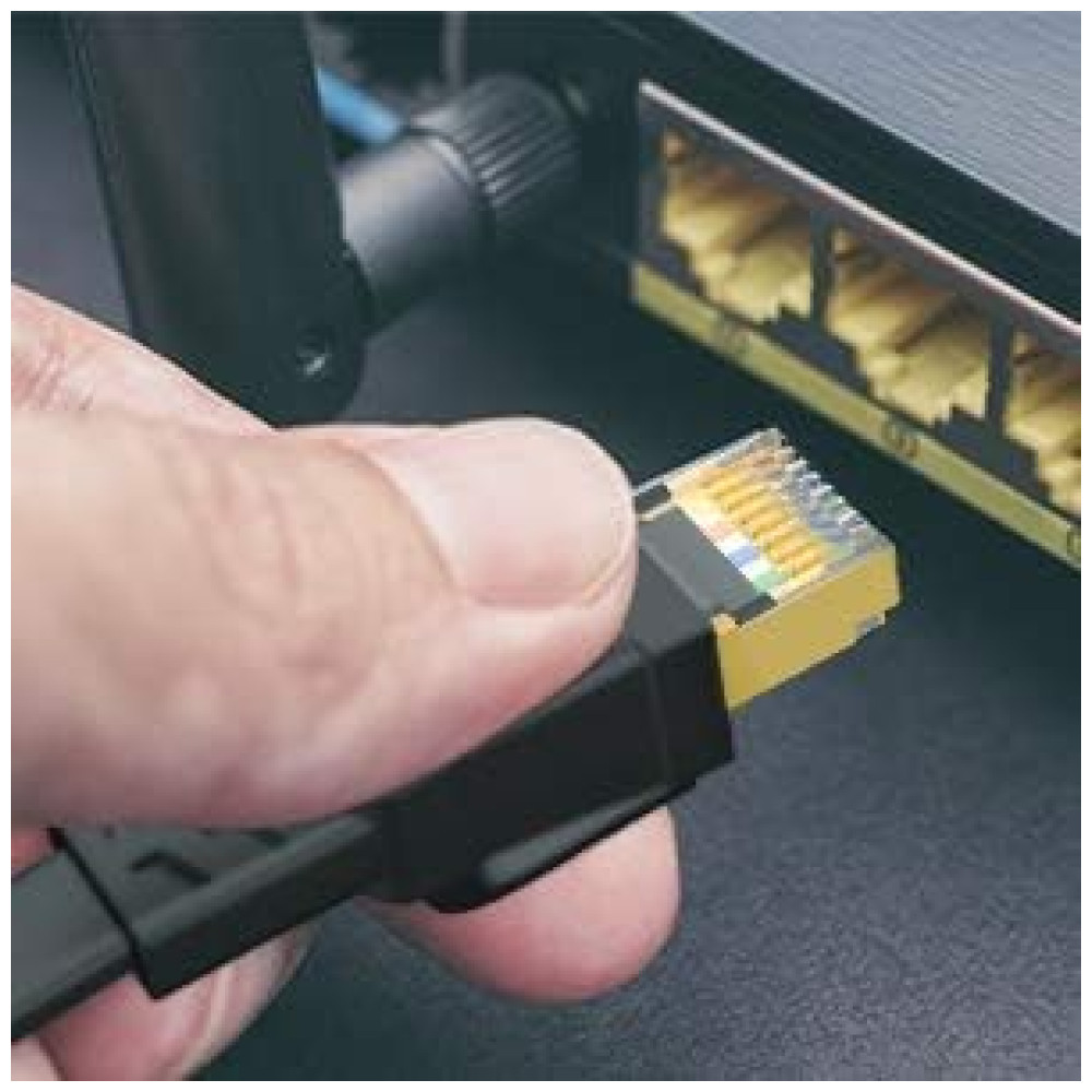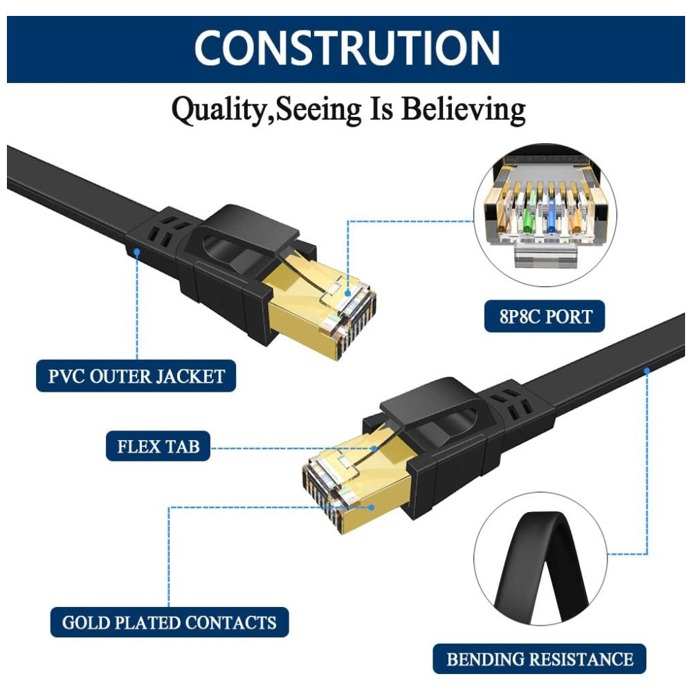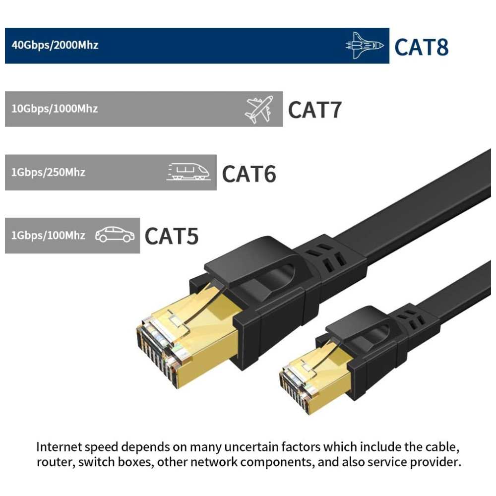 Compatibilidade universal O cabo Ethernet plano Cat 8 é compatível com o cabo Ethernet Cat7 , Cat6 , Cat5 , Cat5e. Com 2 conectores RJ45 banhados a ouro duráveis, está totalmente com Xbox One, Xbox 360, Switches Modems Roteadores, PS3, PS4, PS5, Computador, laptop, impressoras de caixa de TV, impressoras de rede, dispositivo de zenamento conectado à rede, ADSL , NAS, telefones VoIP e muito mais.