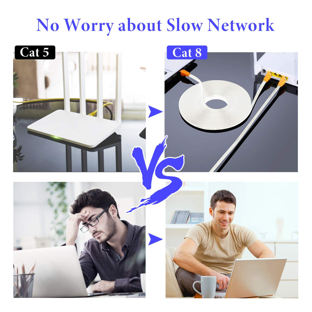 Plano de design exclusivo este cabo Ethernet plano fino e cat 8, permite uma instalação da sua casa ou escritório. Não emaranha os típicos, os cabos LAN são redondos e podem ser facilmente escondidos tapetes, costuras de portas e muito mais. Você pode facilmente se inscrever em voltas sem ocupar espaço se não precisar de todo o comprimento.