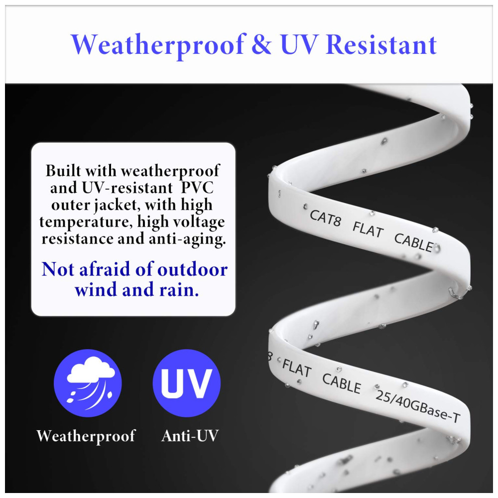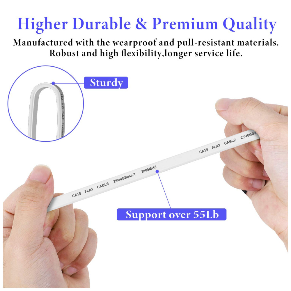 Desempenho superior Composto por 100 de cobre livre de conector no interior, 4 pares 100 30WAG puro e par trançado protegido STP de fios de cobre com 50 pinos de contato banhados a ouro em cada RJ45 protegido, o cabo Ethernet Cat8 oferece a proteção contra interferência EMI, RFI e fidelidade confiança para maior transmissão de dados de dados.