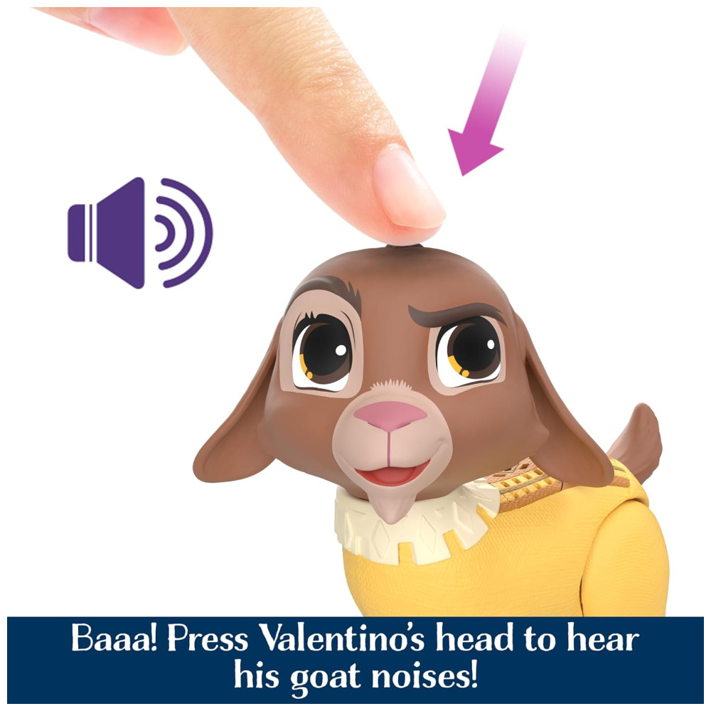 O conjunto Wish Talking Valentino e Star da Disney é perfeito para os fãs que desejam dar vida aos seus personagens favoritos. O conjunto inclui uma figura de cabra falante, Valentino, e uma adorável figura de estrela. As crianças podem escolher entre dois modos diferentes pressionar a cabeça de Valentino para ouvir ruídos de cabra ou prender Star nas costas das figuras para ativar sua voz humana.