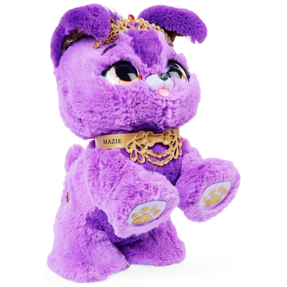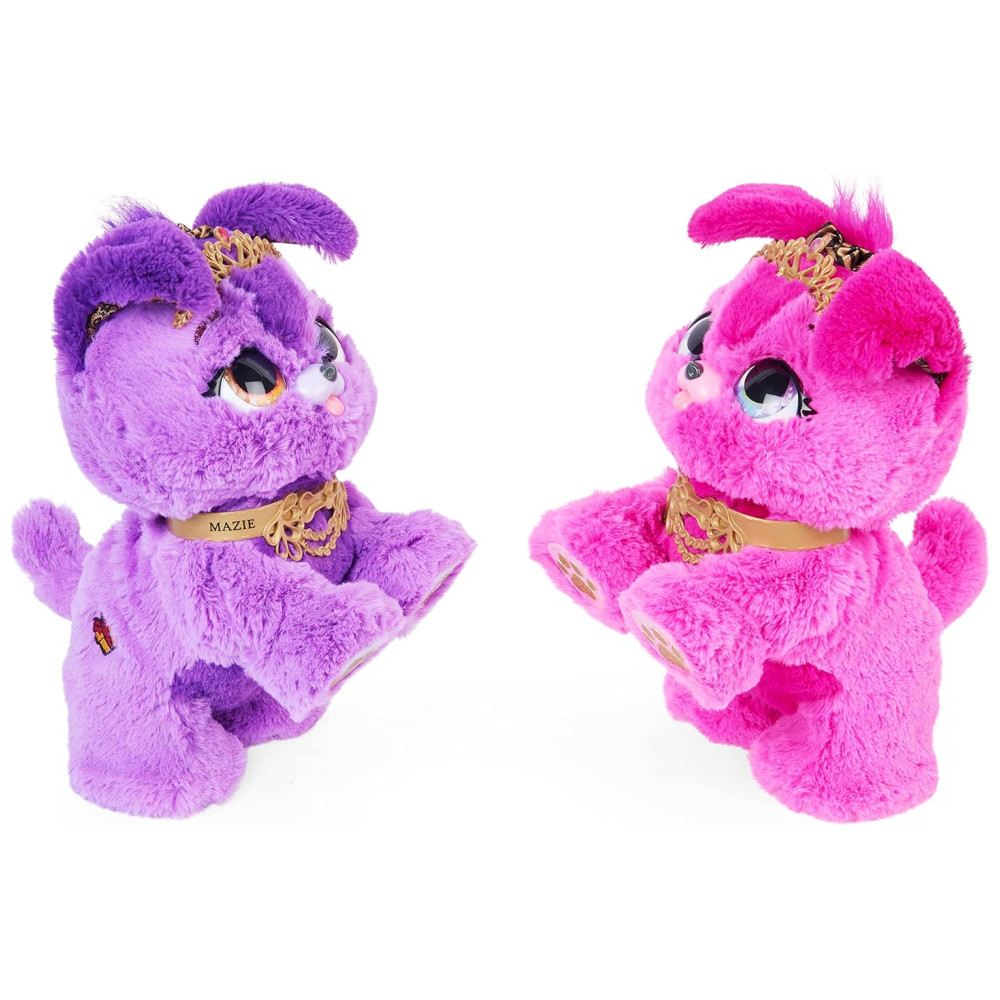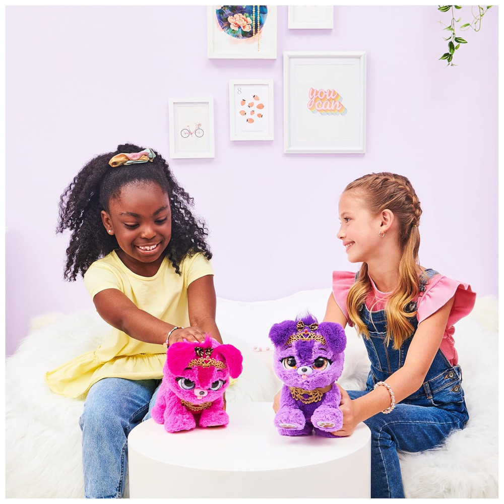 Para iniciar a grande revelação, desembrulhe a camada externa da caixa e puxe a etiqueta para presente. A caixa começará a tremer enquanto seu cachorrinho majestoso abre caminho para fora O painel frontal se abre, revelando qual Present Pets Princess Pup está dentro de Mazie ou Cici Cada Princesa Filhote apresenta uma tiara e coleira brilhantes, detalhes dourados nas orelhas e patas, olhos expressivos e um corpo macio e macio.