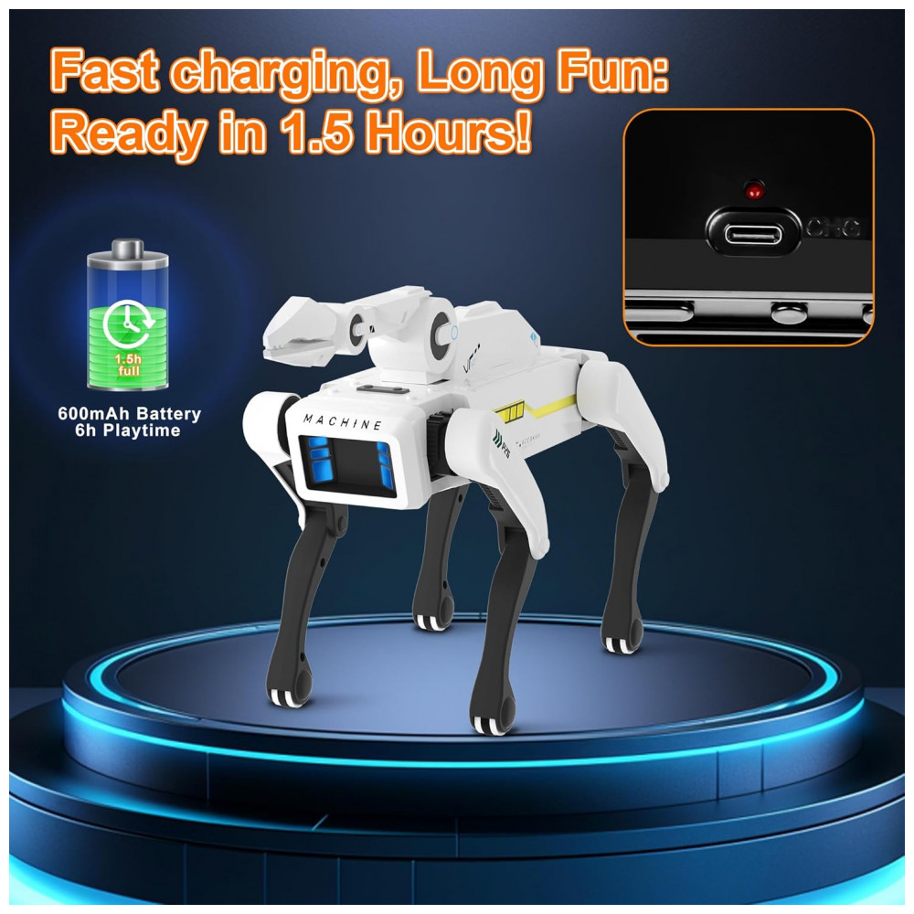 Cachorro robô com garra Dingdongwu 30 ações controle por voz e controle remoto bateria recarregável