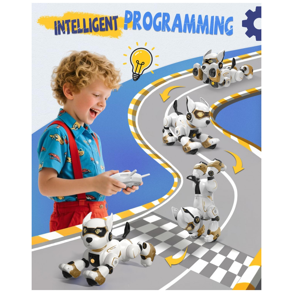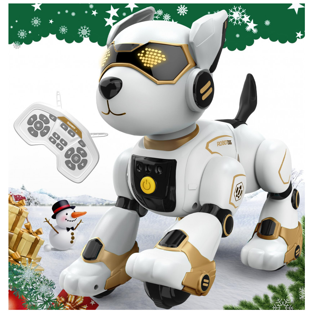 Cachorro robô programável R27 dourado com controle remoto voz toque dança e som de animais