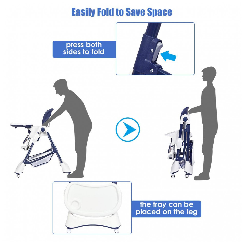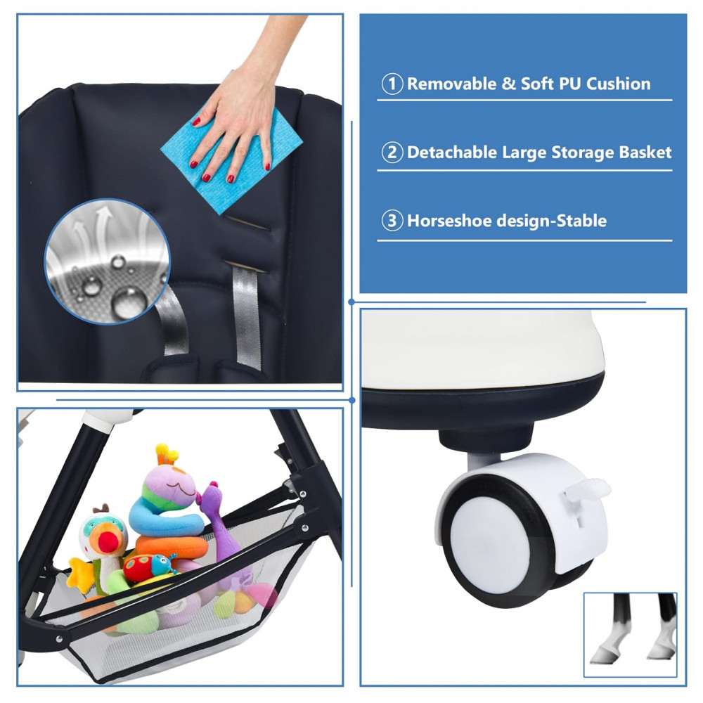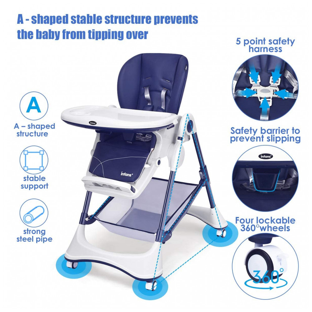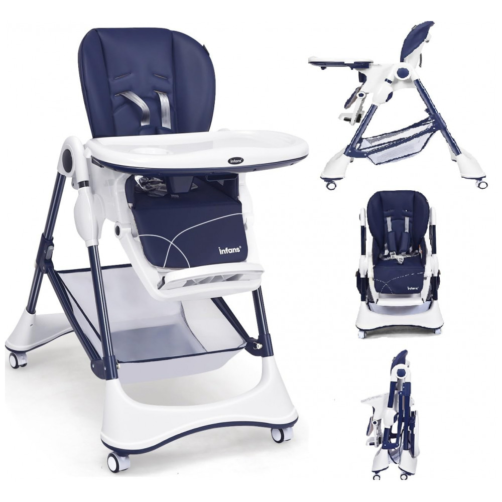 Cadeira de Alimentação Cadeirão com 4 Rodas e Cesta de zenamento INFANS Azul