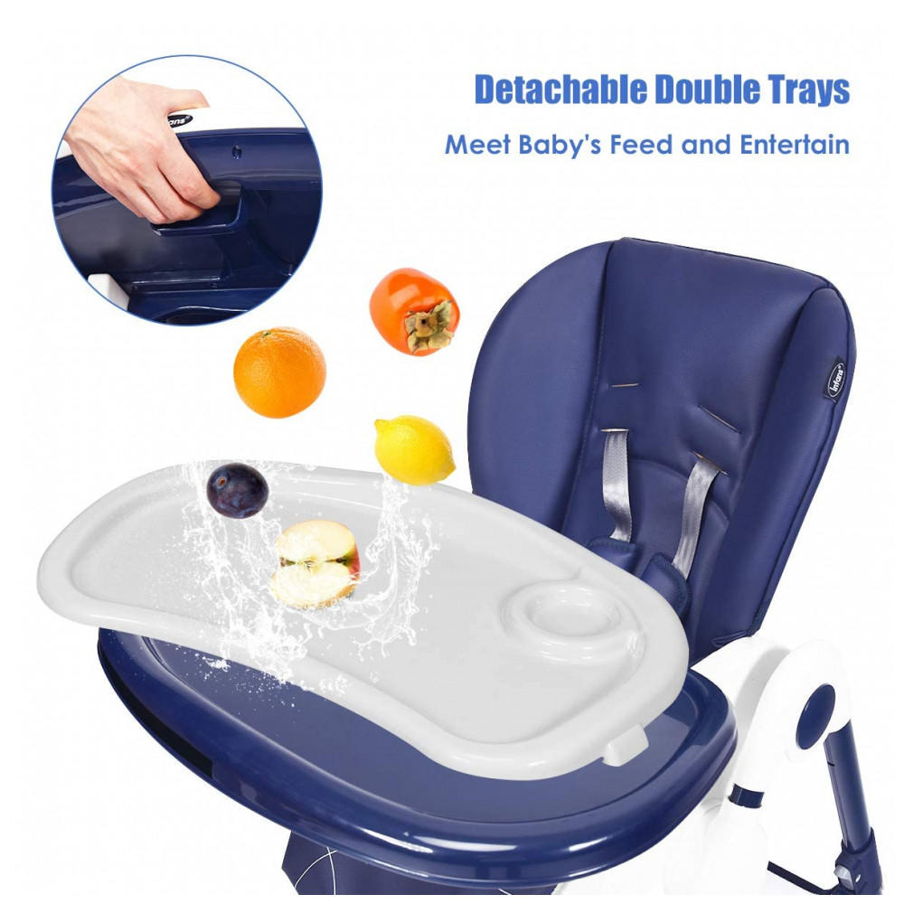 CONVENIENTE DE LIMPAR Você sempre tem problemas com a limpeza A cadeira alta INFANS ajudou as mães a resolver este problema. A cadeira contém bandejas duplas destacáveis. A bandeja superior pode ser lavada na lava louças e pode ser usada para alimentar ou comer bebês. A bandeja inferior é a área de recreação onde os bebês podem se divertir brincando. A capa de almofada de PU removível e impermeável é fácil de limpar e evita o acúmulo de poeira