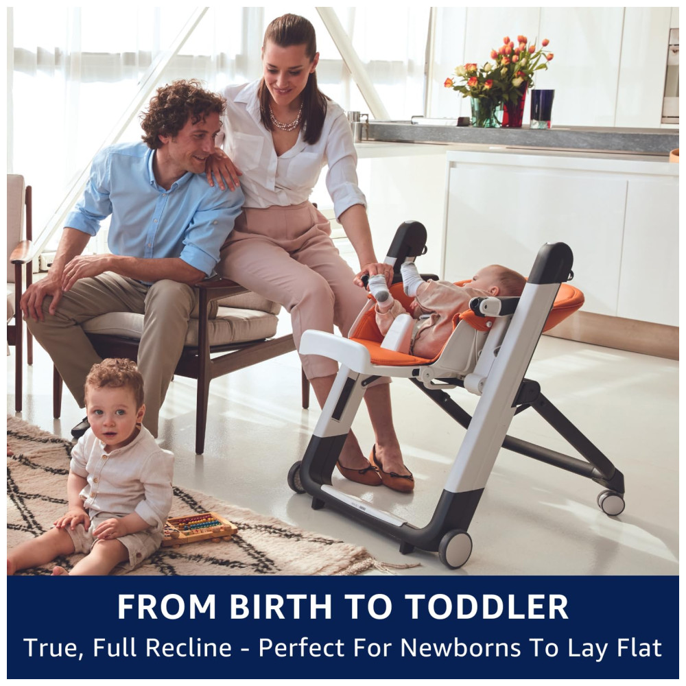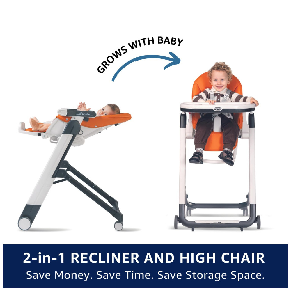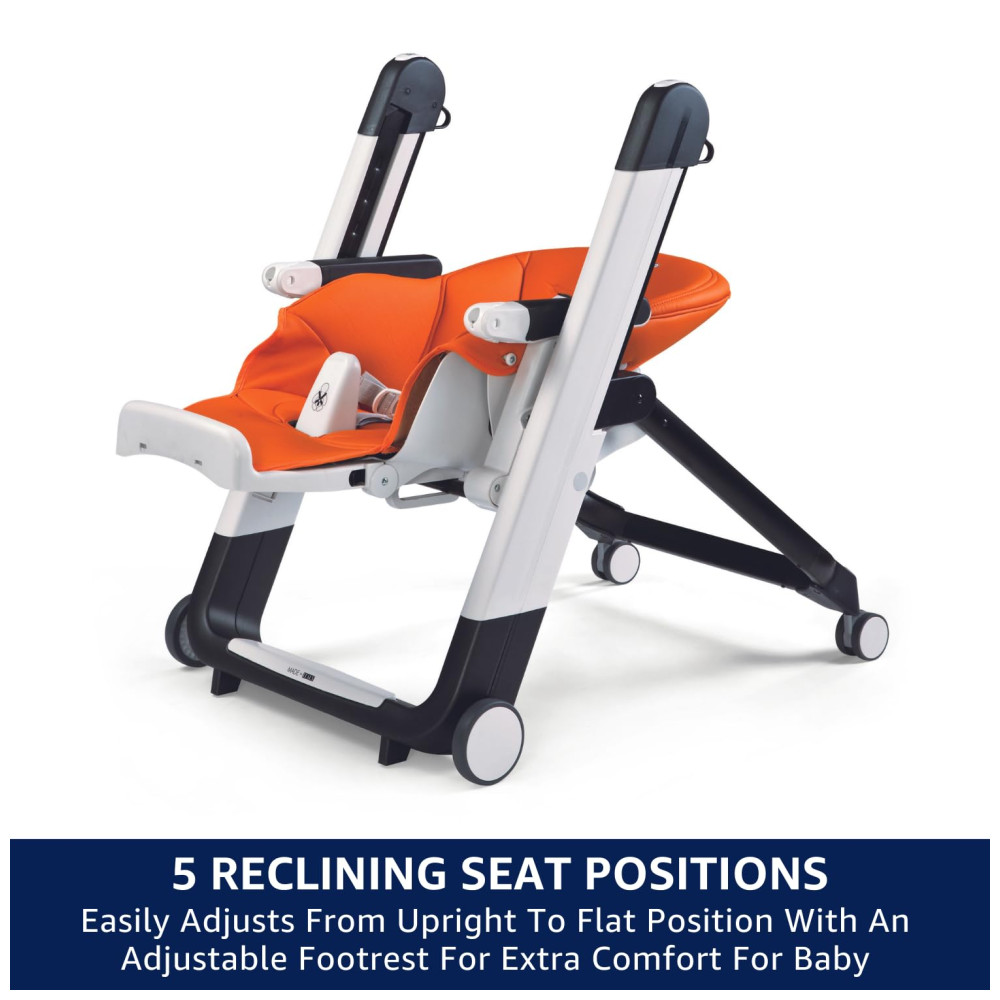 Assento reclinável confortável que reclina totalmente no ângulo de descanso mais confortável para o bebê. Feito na Itália.