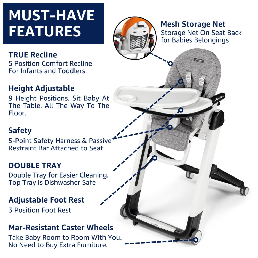 Cadeira de Alimentação Cadeirão com Altura do Assento Ajustável e 4 Rodas Peg Perego Bege