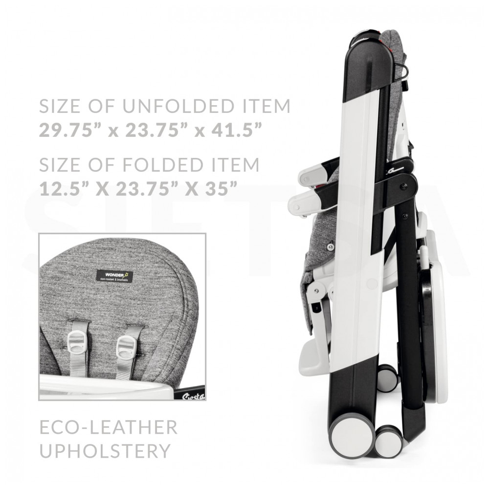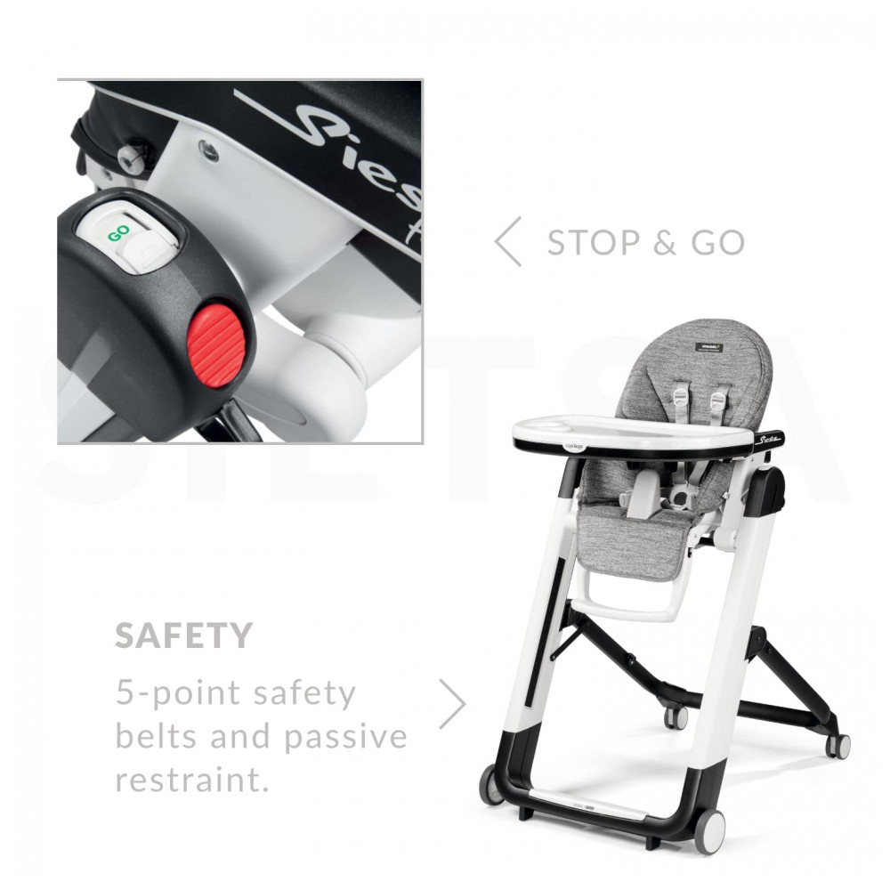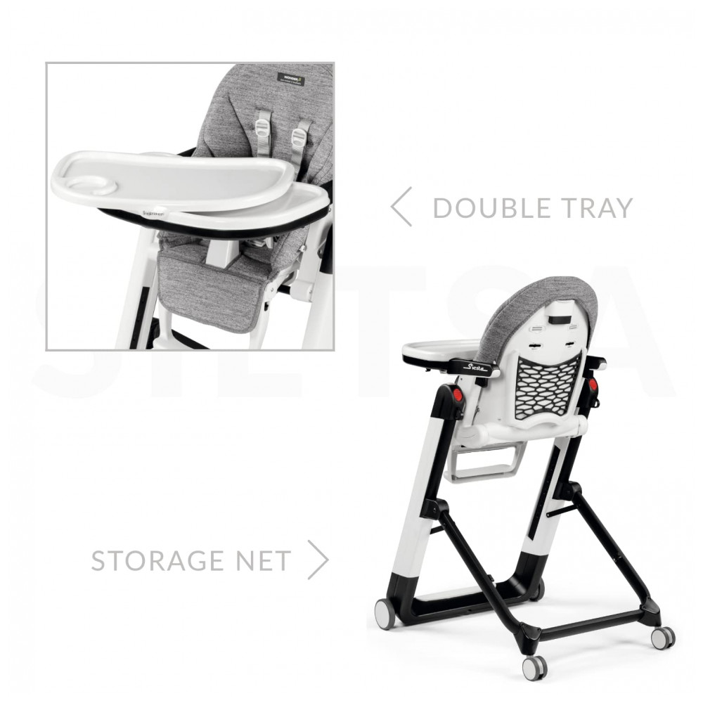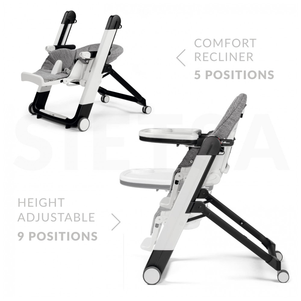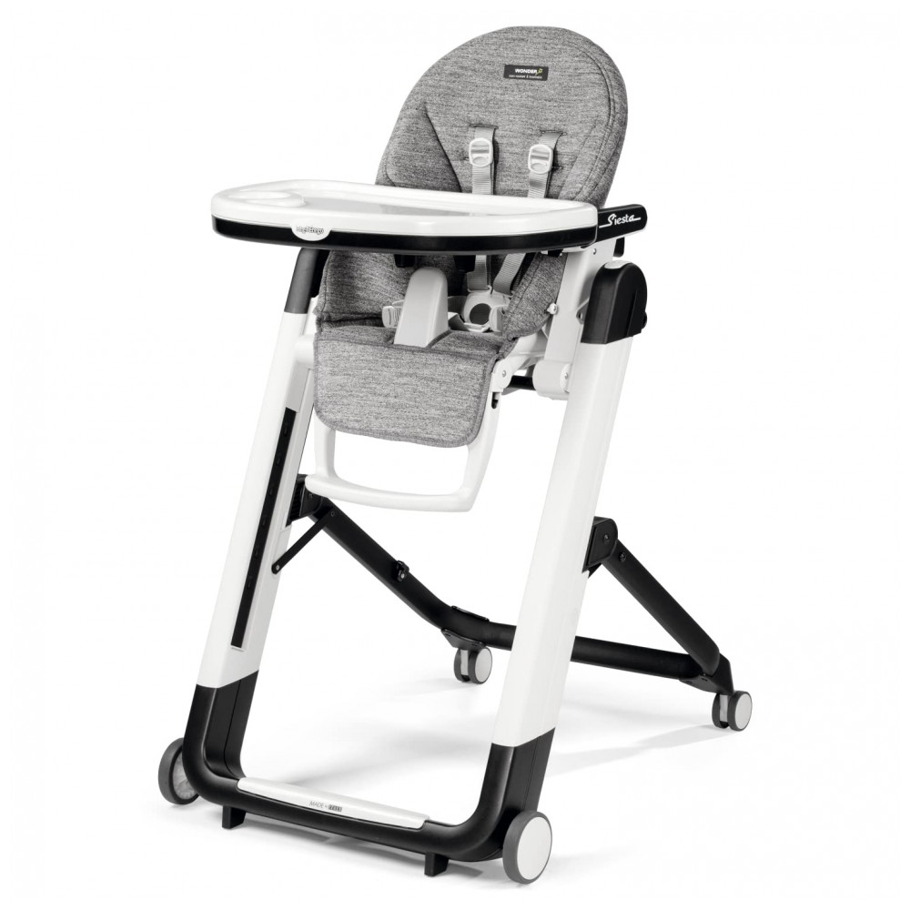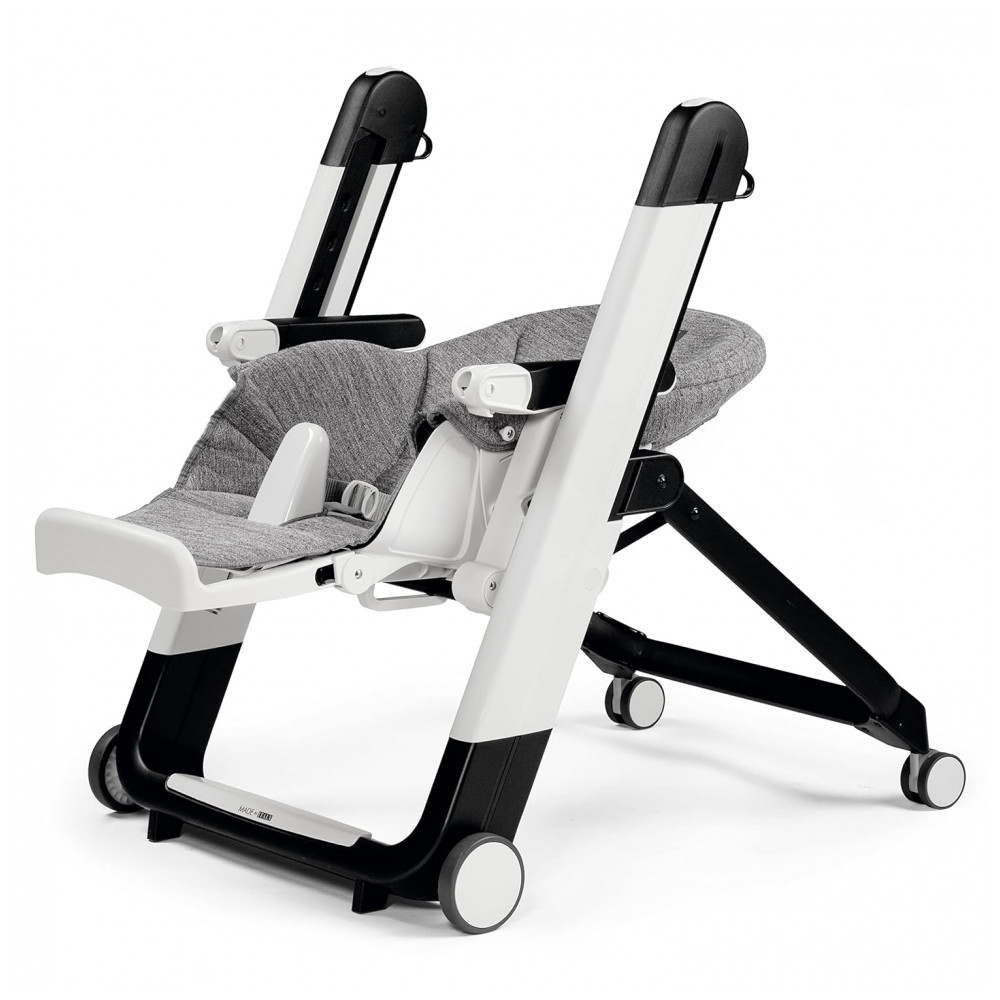 Cadeira de Alimentação Cadeirão com Altura do Assento Ajustável e 4 Rodas Peg Perego Cinza e Branco