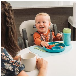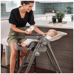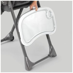 A cadeira alta ajustável acomoda o crescimento desde o bebê até a criança e apresenta uma dobra larga de que economiza espaço que fica independente para zenamento.