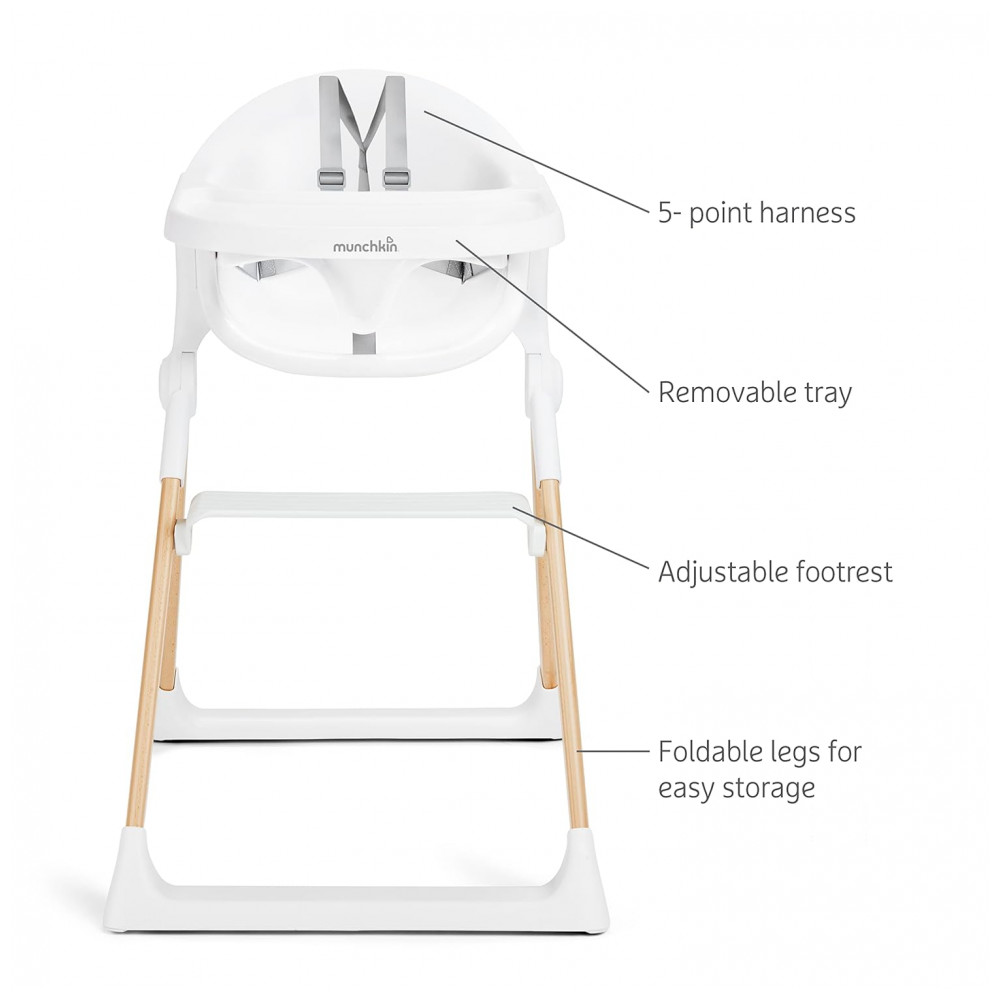 Cadeira de Alimentação Cadeirão com Design Moderno Compacto e Fácil de Limpar Munchkin Branco