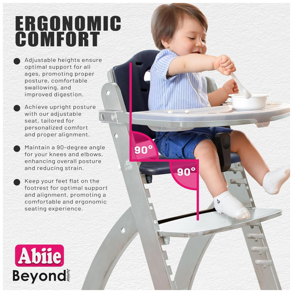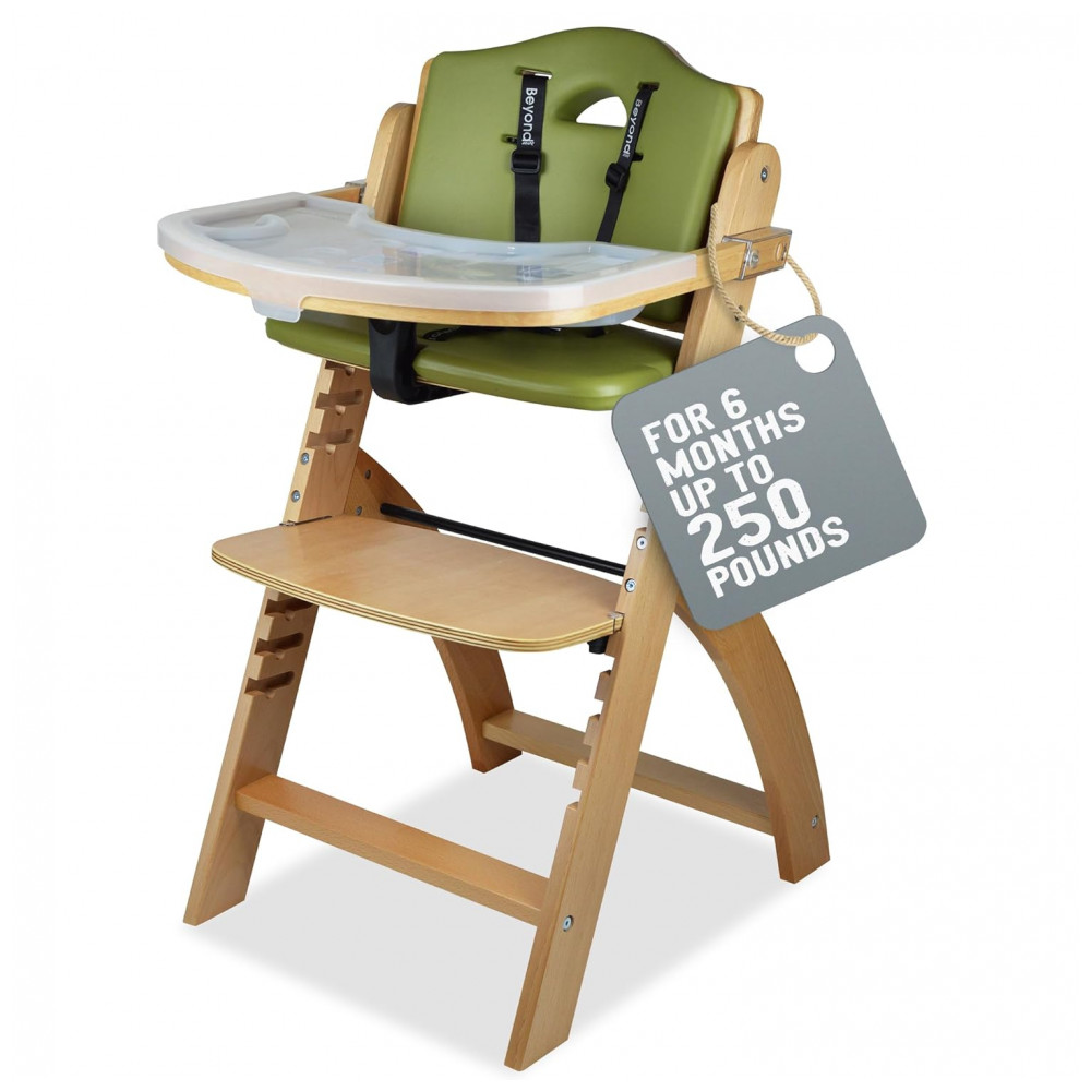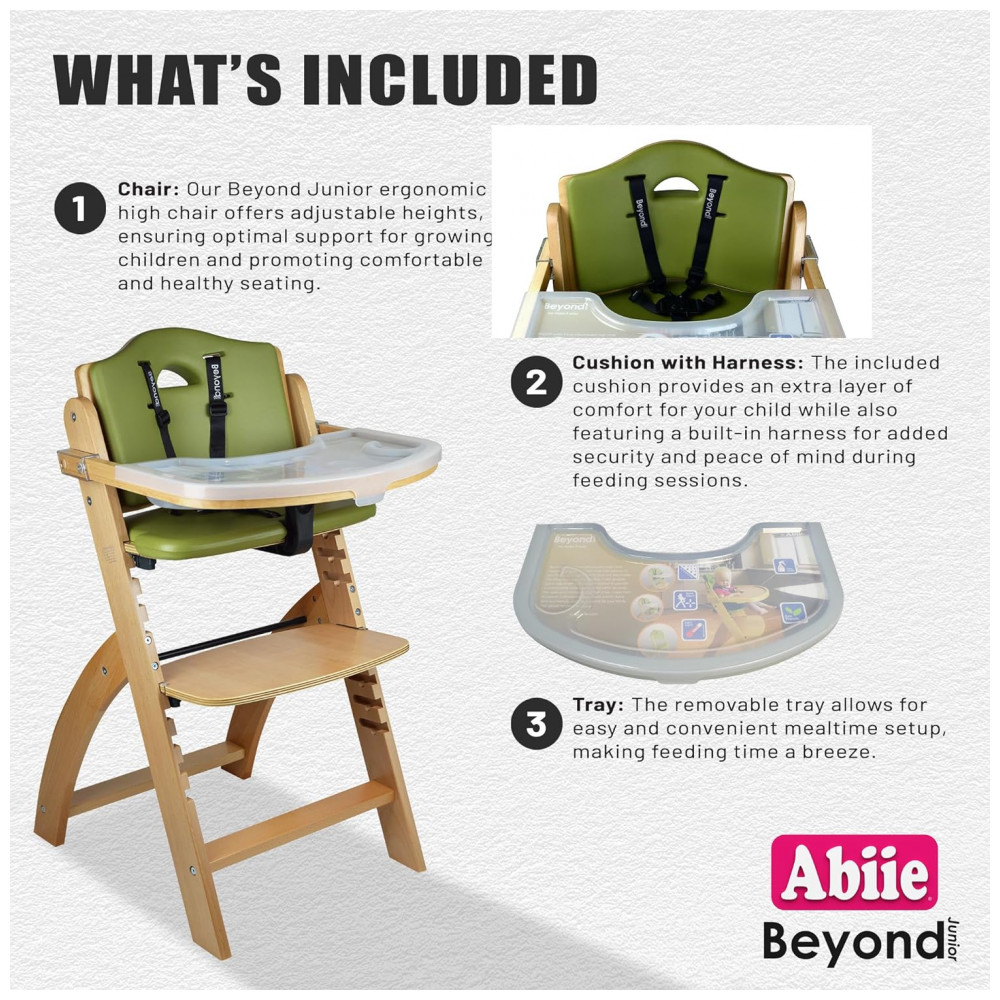 Cadeira de Alimentação Cadeirão em Madeira com Bandeja Removível e Altura Ajustável Abiie Verde