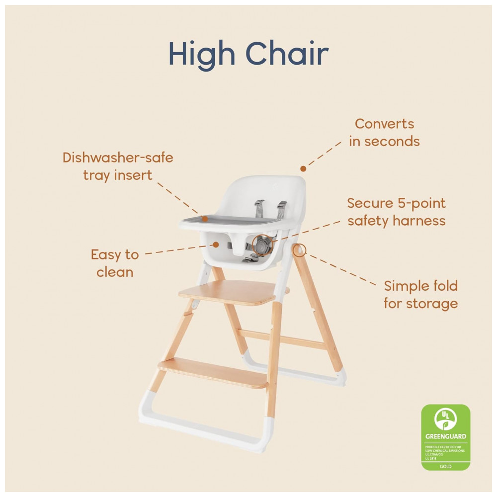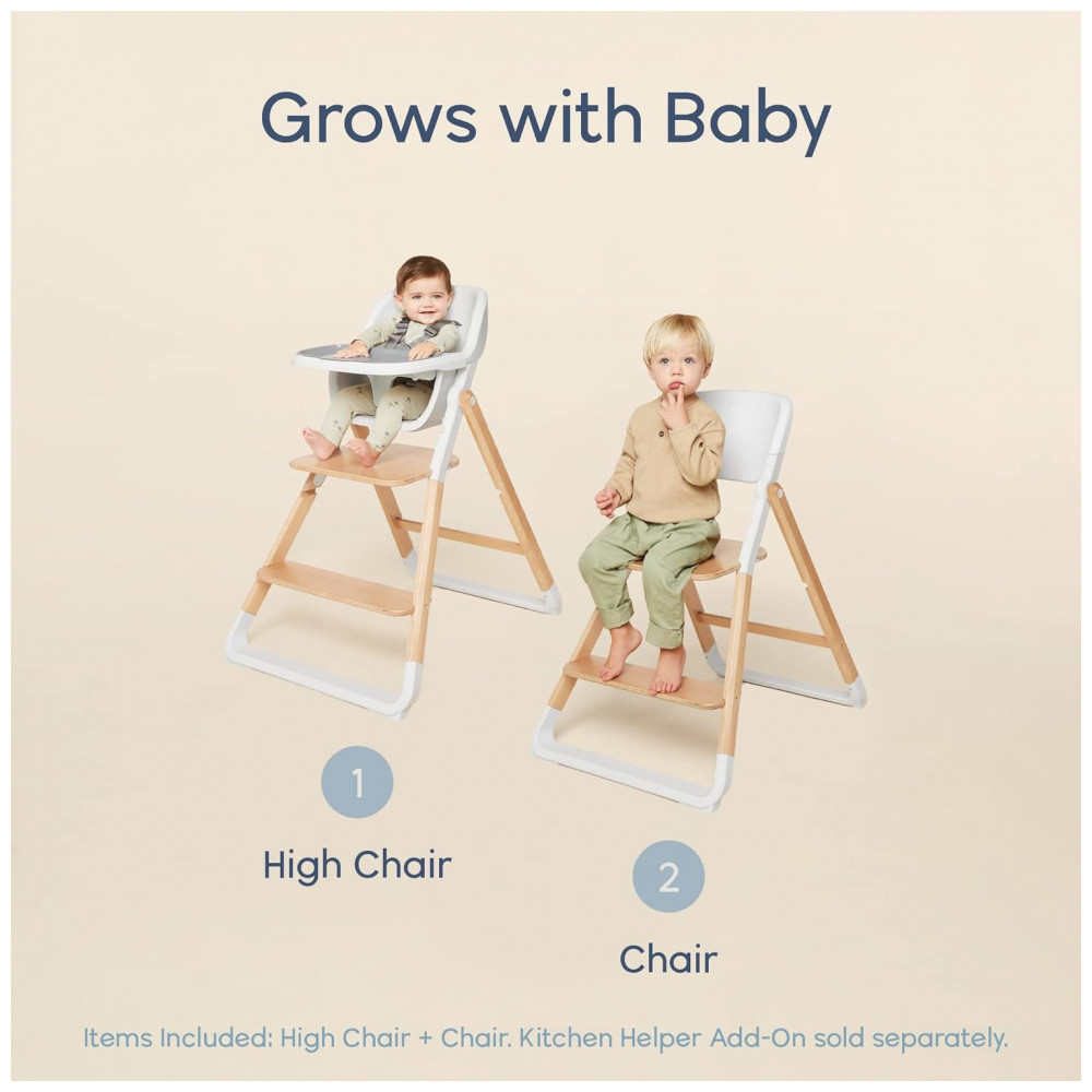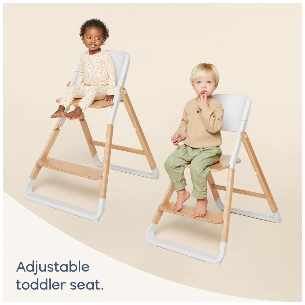 LIMPEZA COM FACILIDADE A cadeira alta e a cadeira Evolve são feitas de madeira de faia premium com acabamento brilhante, permitindo uma limpeza fácil. A cadeira alta e a cadeira Evolve também vêm com um assento de plástico lavável e uma bandeja removível para lava louças, para que você não precise se preocupar em esfregar, as manchas saem facilmente.