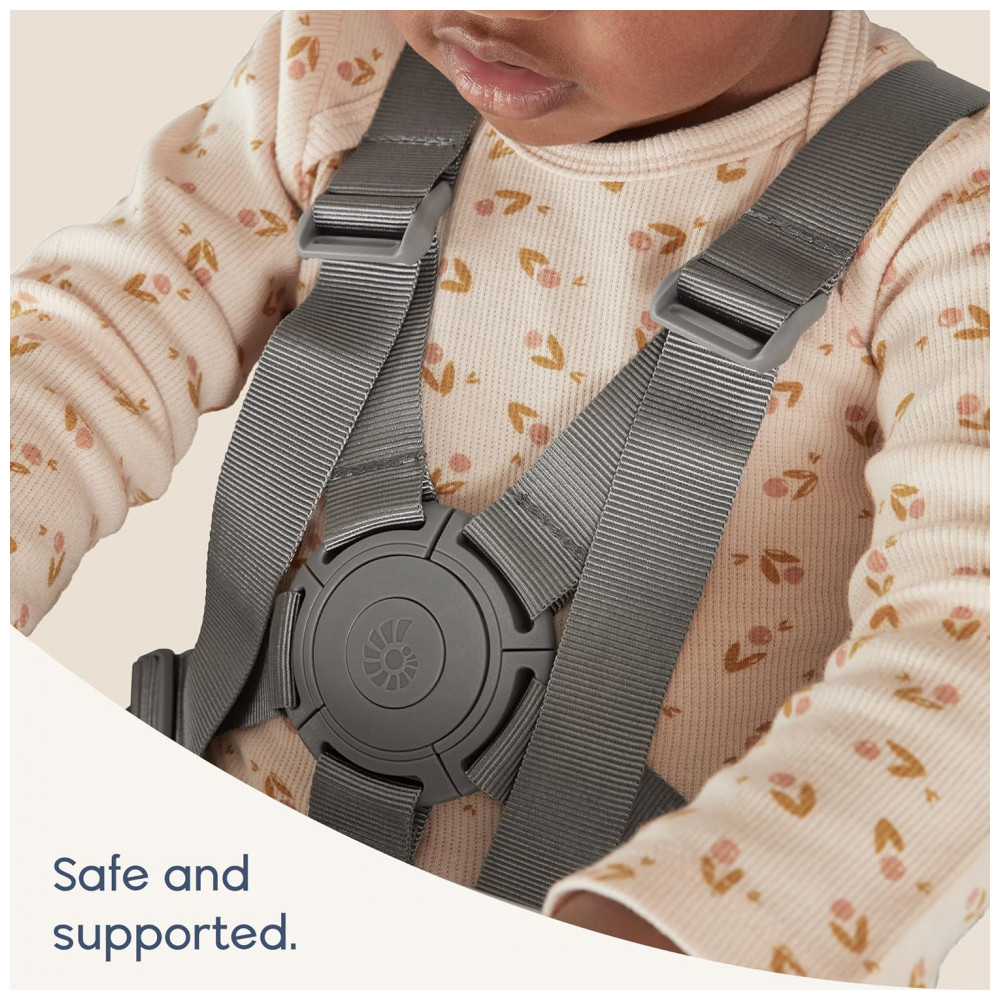 SEGURANÇA GARANTIDA A cadeira alta Ergobaby Evolve possui um arnês de segurança de 5 pontos para manter o bebê e confortável enquanto cria uma experiência sem complicações para você. A estrutura também possui pernas revestidas de borracha duráveis para evitar derrapagens ou tombamento.