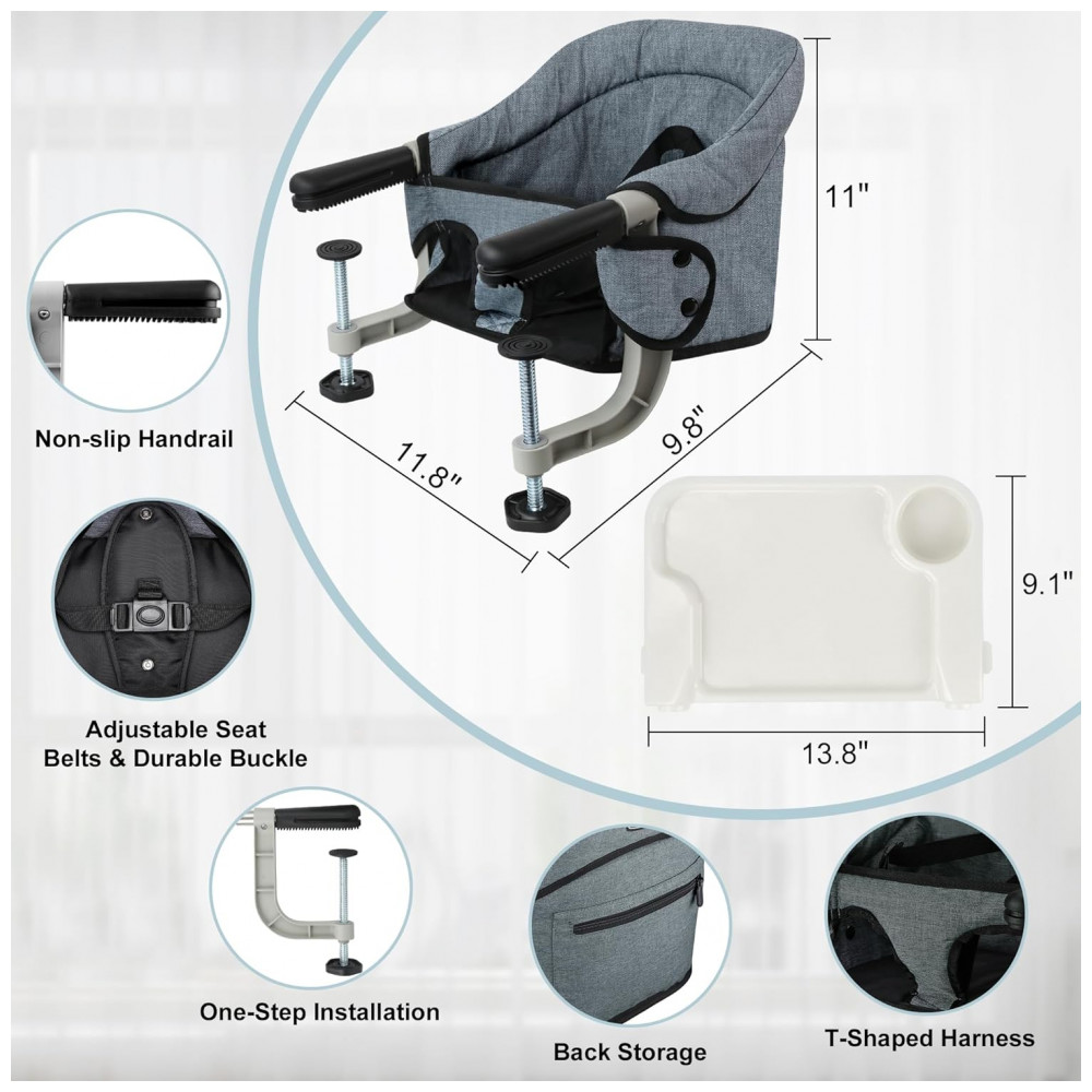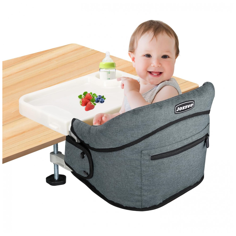 Cadeira de Alimentação Portátil com Encaixe em Mesa e Bandeja Jozzve Cinza