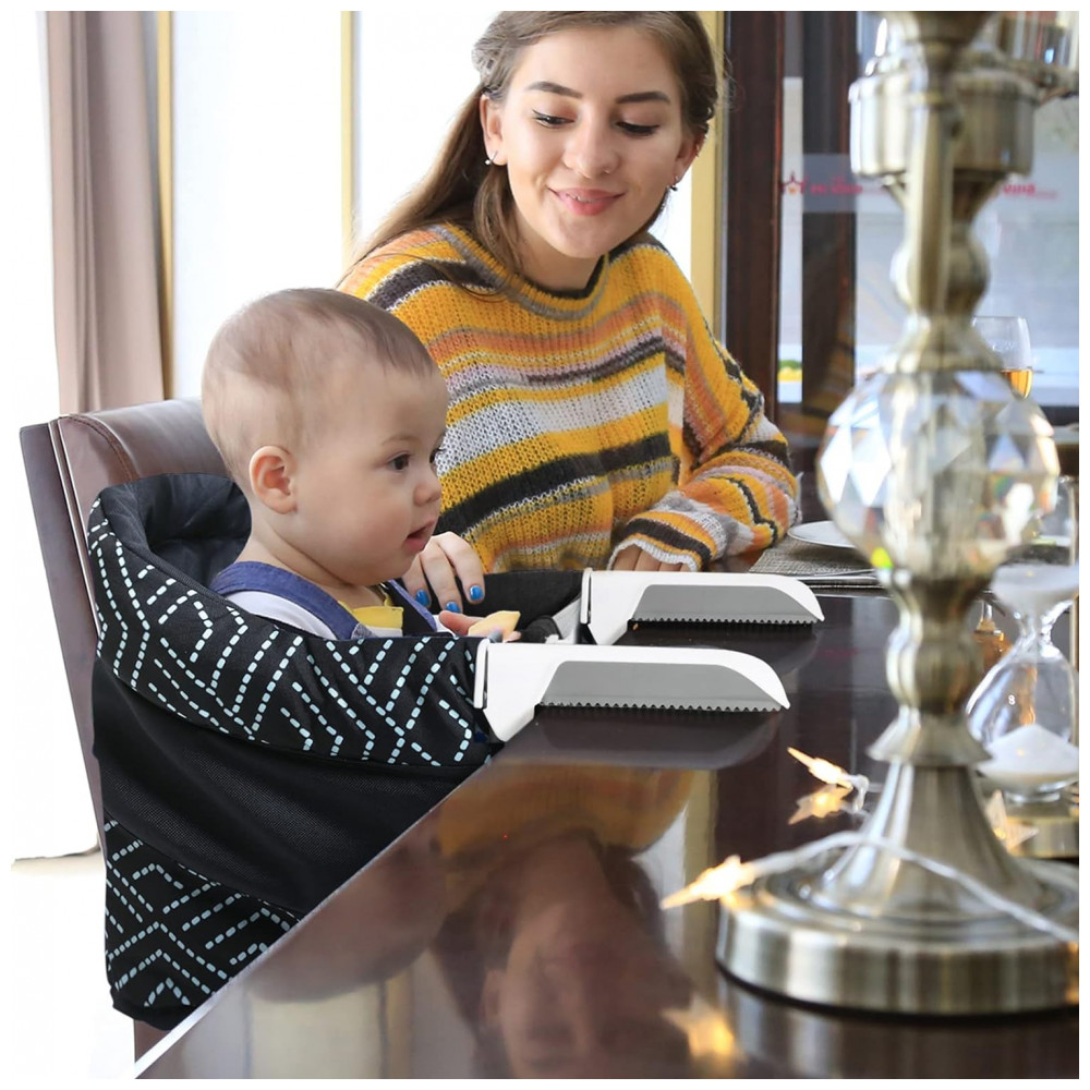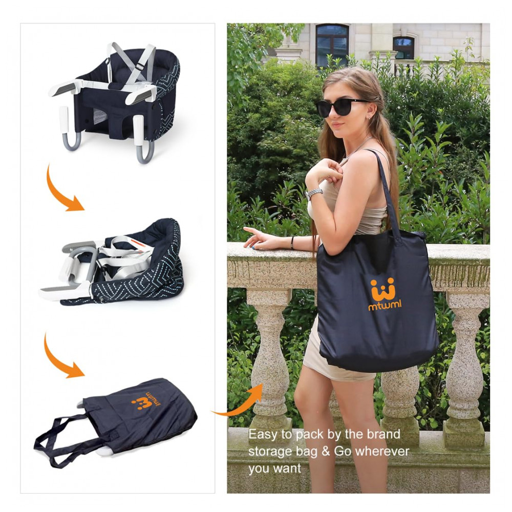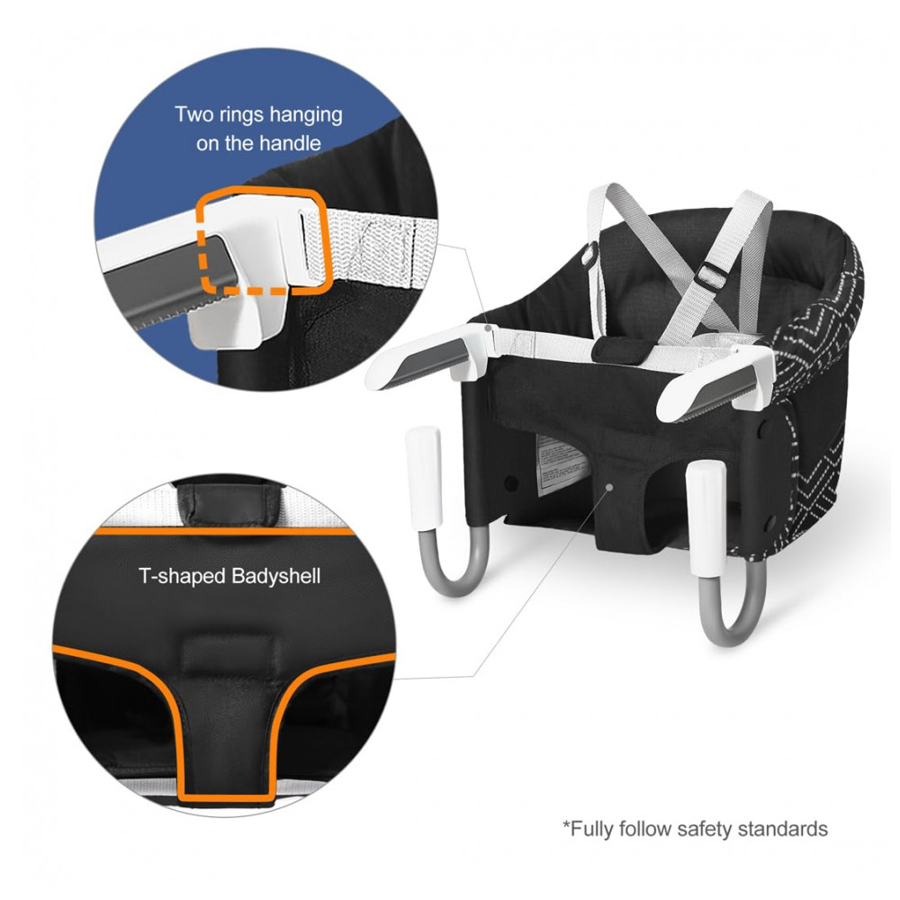 Fácil de instalar e limpar Este gancho na cadeira leva apenas 20 segundos para instalar e desmontar, a dobra compacta cabe facilmente em bolsas de zenamento, carrinhos de bebê. A capa de algodão pode ser removível para limpeza fácil de lavar à mão ou na máquina.