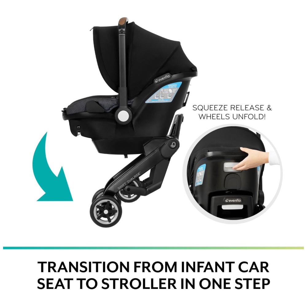 Cadeira de Bebê para Carro 2 em 1 com Rodas para Transporte e Instalação Prática Evenflo Shyft DualRide Cinza