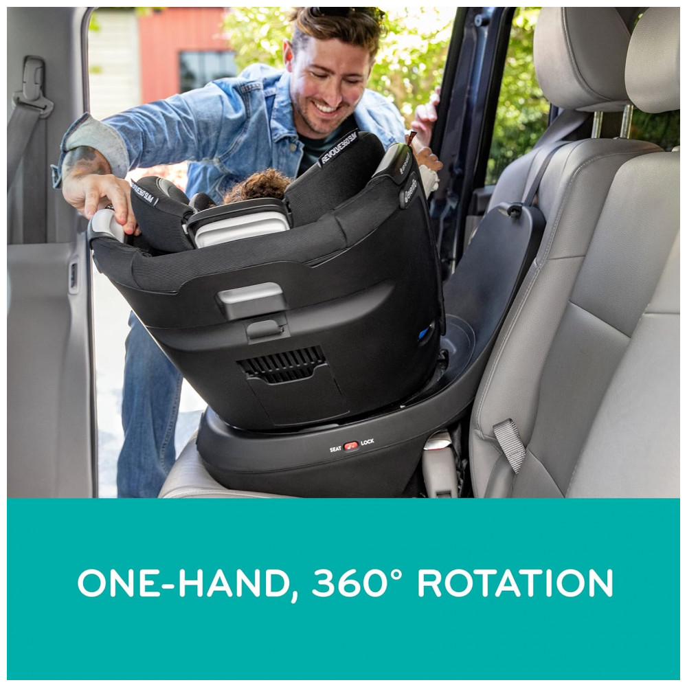 Sua rotação de uma mão de 360 torna a entrada e saída do seu filho do carro fácil e conveniente, uma inovação premiada que continua a proporcionar praticidade.