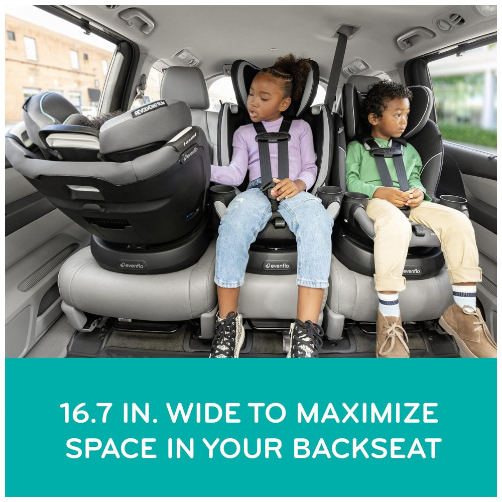 O assento de carro Revolve360 maximiza o espaço no banco de trás com sua pegada simplificada de 40 centímetros, garantindo que os passageiros tenham espaço suficiente sem comprometer a segurança, conforto ou estilo.