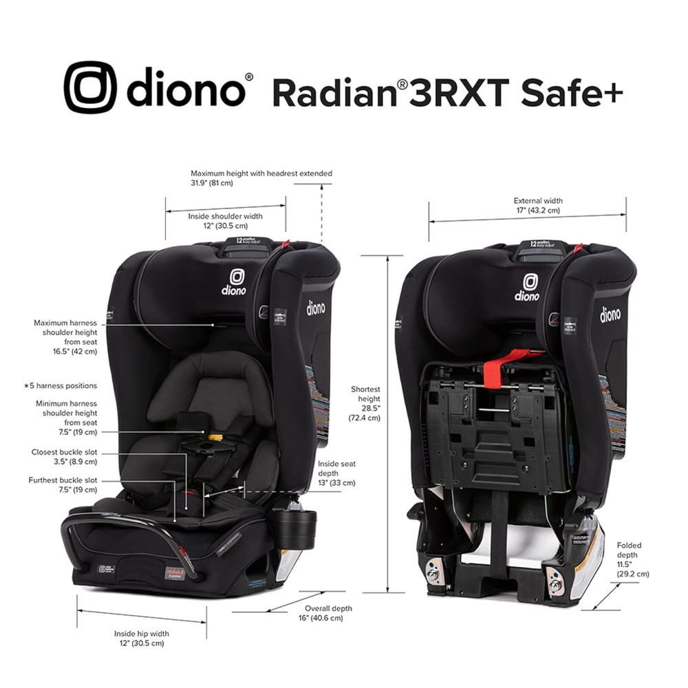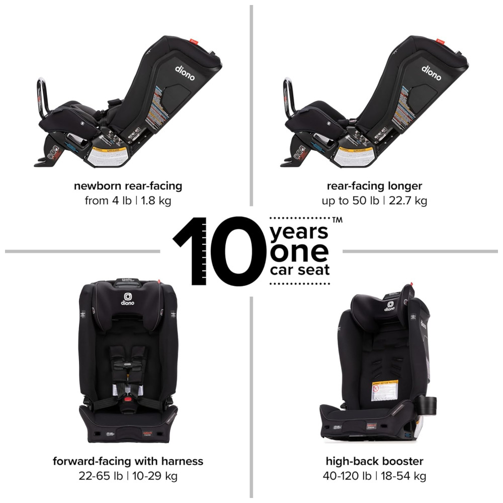 Cadeira de Bebê para Carro 4 em 1 para 10 Anos de Uso Diono Radian 3RXT SafePlus Preta