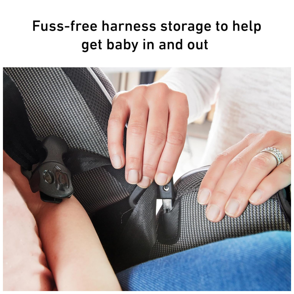 O sistema de arnês de ajuste simples e ajusta a altura do arnês e do encosto de cabeça em 10 posições em um movimento para garantir que seu filho esteja sempre devidamente protegido.