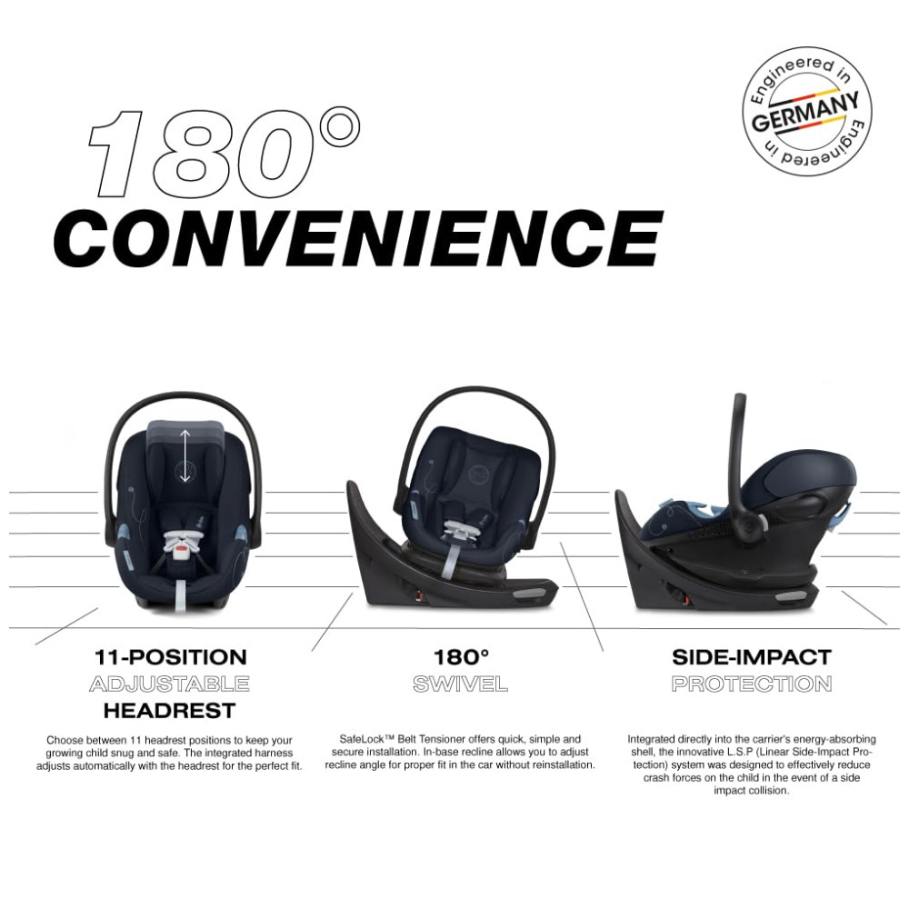 Cadeira de Bebê para Carro com Base Giratória de 180º Barra Anti-Rebote e Apoio de Cabeça Ajustável em 11 Posições Cybex Aton G Swivel Azul Oceano