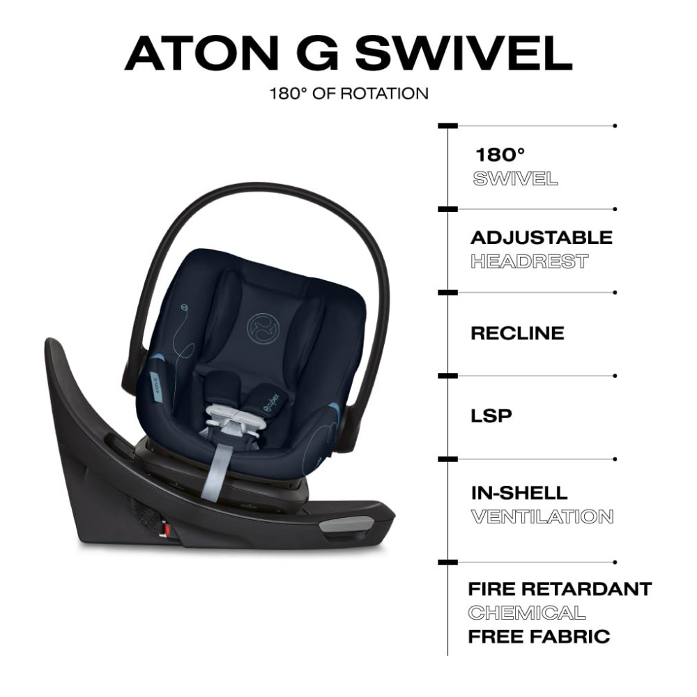 O CYBEX Aton G Swivel é um assento para automóvel que combina inovação, conveniência e segurança em um design moderno. Com uma base giratória de 180 graus, o Aton G Swivel proporciona uma rotação ergonômica que facilita o carregamento e descarregamento da criança, mesmo com o assento já instalado no veículo.