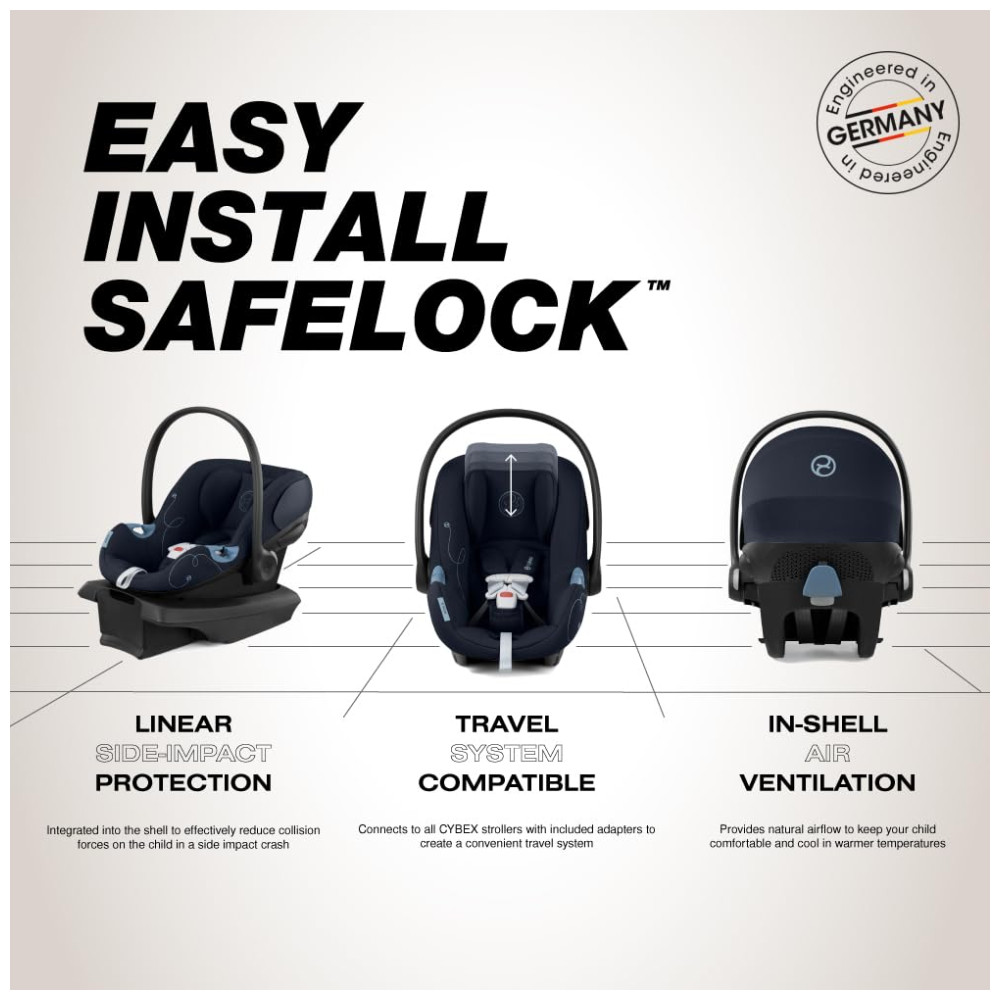 Cadeira de Bebe para Carro com Proteção Linear Contra Impactos Laterais Apoio de Cabeça Ajustável em 11 Posições e Base Safelock Cybex Aton G Azul