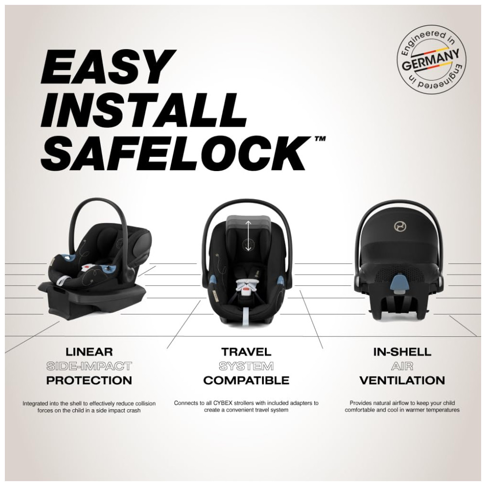 Cadeira de Bebe para Carro com Proteção Linear Contra Impactos Laterais Apoio de Cabeça Ajustável em 11 Posições e Base Safelock Cybex Aton G Preta