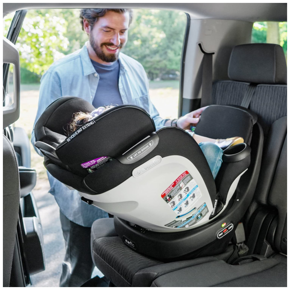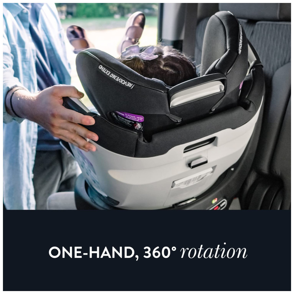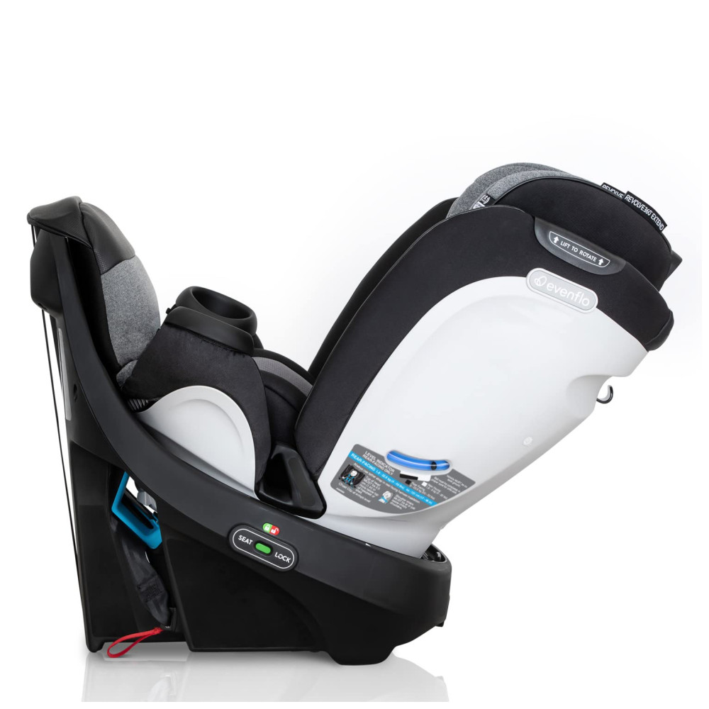 O assento de carro giratório Evenflo Gold Revolve360 Extend AllinOne com SensorSafe é uma evolução do Revolve360, o assento de carro giratório mais popular nas Américas. Ele se destaca pela rotação de 360 graus com uma única mão, facilitando colocar e retirar seu filho do carro com praticidade. Este assento cresce junto com a criança, oferecendo 3 modos de uso adaptáveis a cada estágio: voltado para trás (4 a 22,68 quilos), voltado para frente (19,73 quilos) e assento de elevação (36,28 quilos).