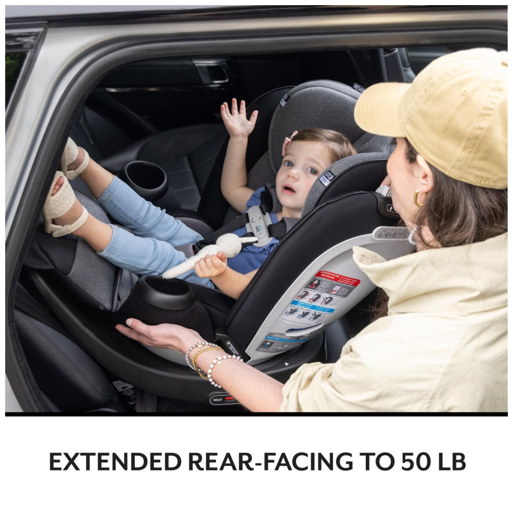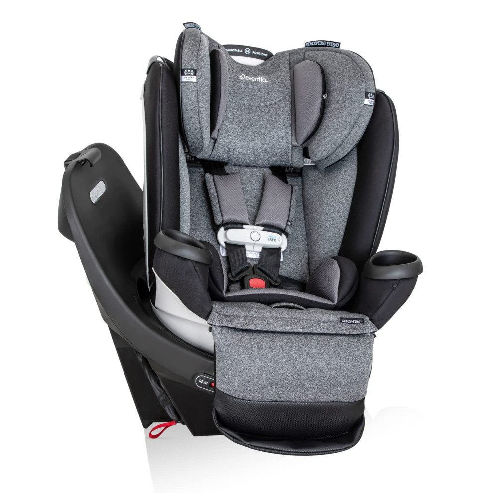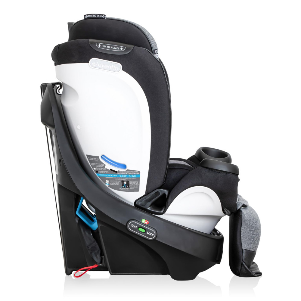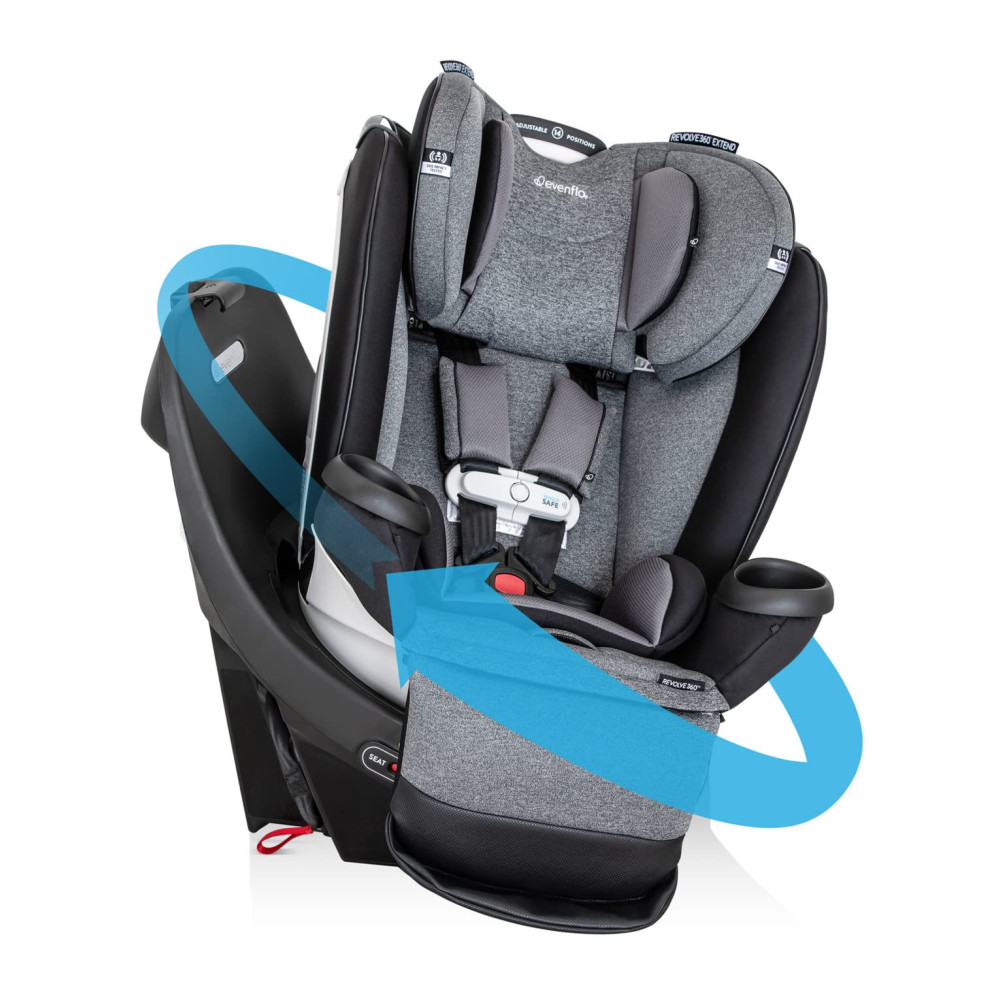 O assento de carro giratório Evenflo Gold Revolve360 Extend AllinOne com SensorSafe é uma evolução do Revolve360, o assento de carro giratório mais popular nas Américas. Ele se destaca pela rotação de 360 graus com uma única mão, facilitando colocar e retirar seu filho do carro com praticidade. Este assento cresce junto com a criança, oferecendo 3 modos de uso adaptáveis a cada estágio: voltado para trás (4 a 22,68 quilos), voltado para frente (19,73 quilos) e assento de elevação (36,28 quilos).