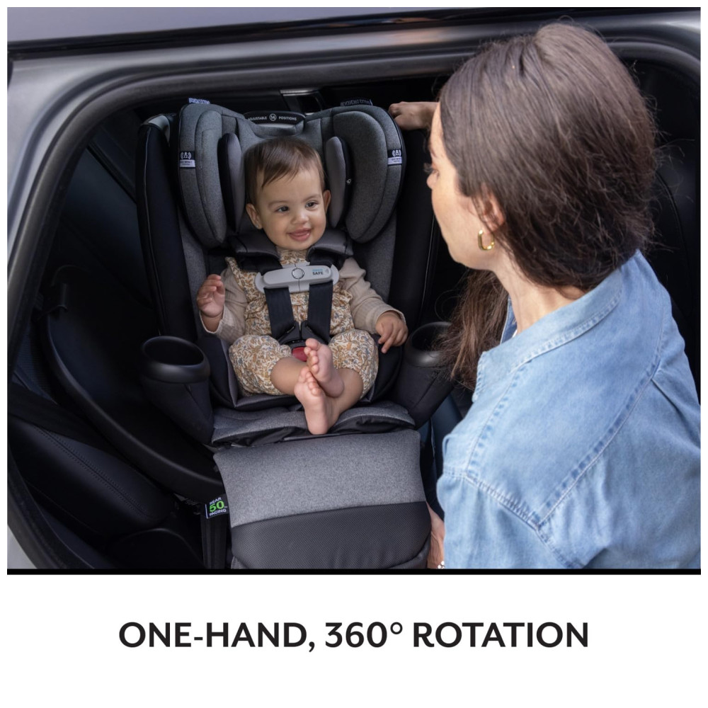 O assento de carro giratório Evenflo Gold Revolve360 Extend AllinOne com SensorSafe é uma evolução do Revolve360, o assento de carro giratório mais popular nas Américas. Ele se destaca pela rotação de 360 graus com uma única mão, facilitando colocar e retirar seu filho do carro com praticidade. Este assento cresce junto com a criança, oferecendo 3 modos de uso adaptáveis a cada estágio: voltado para trás (4 a 22,68 quilos), voltado para frente (19,73 quilos) e assento de elevação (36,28 quilos).