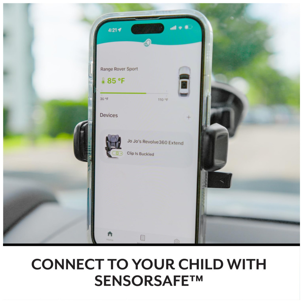 Equipado com o sistema SensorSafe, conecta você ao seu filho no banco de trás, fornecendo alertas em tempo real para quatro condições potencialmente perigosas: clipe do peito desafivelado, temperatura muito alta ou muito baixa, criança sem supervisão e criança sentada por muito tempo.