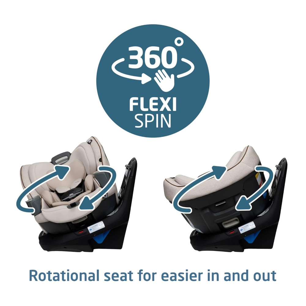 Apresentando o Emme 360TM com tecnologia 360 FlexiSpin, um assento de carro conversível projetado para acompanhar seu filho desde o nascimento até os 10 anos com conforto e segurança contínuos. A principal inovação deste modelo é o sistema rotacional 360 FlexiSpin, que facilita girar a cadeirinha para retirar seu filho com menos esforço, reduzindo o impacto nas costas dos pais.