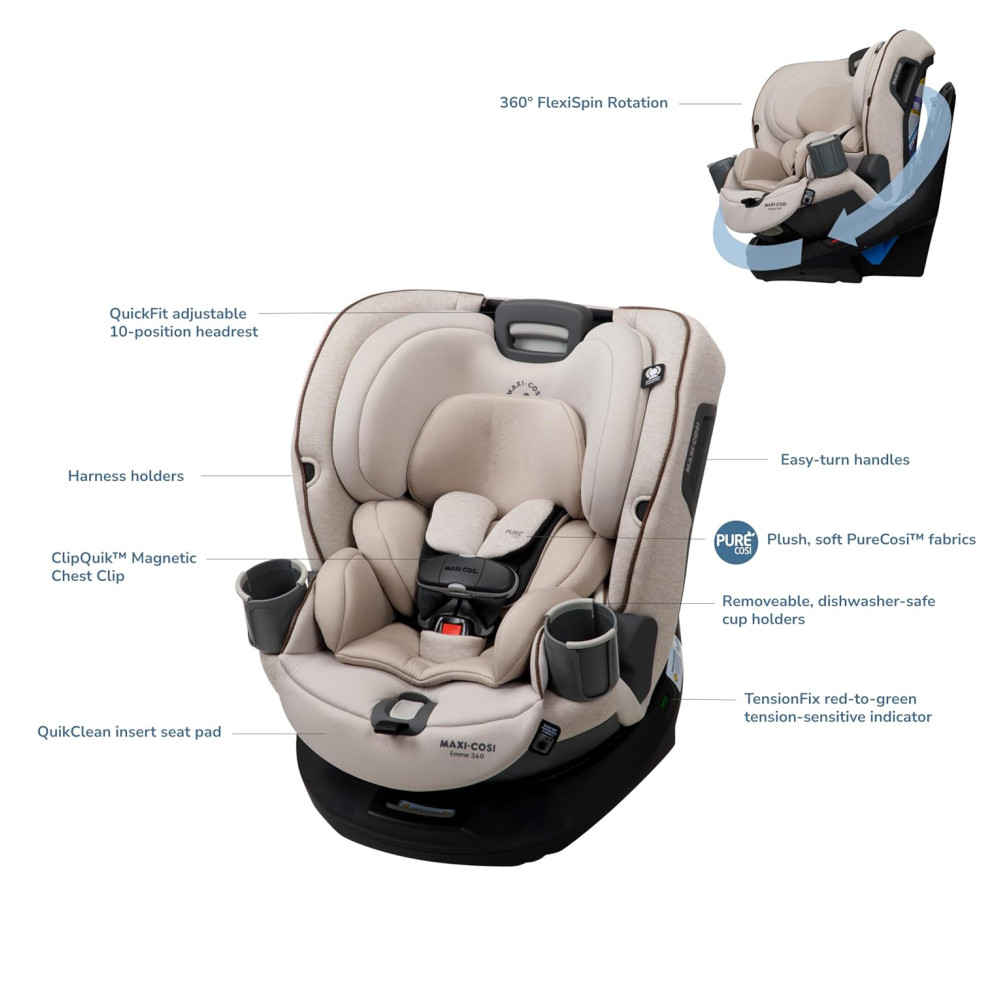 Cadeira de Bebe para Carro com Rotação de 360° para Recém-Nascidos e Crianças de Até 10 Anos Maxi-Cosi Emme 360 Bege Deserto