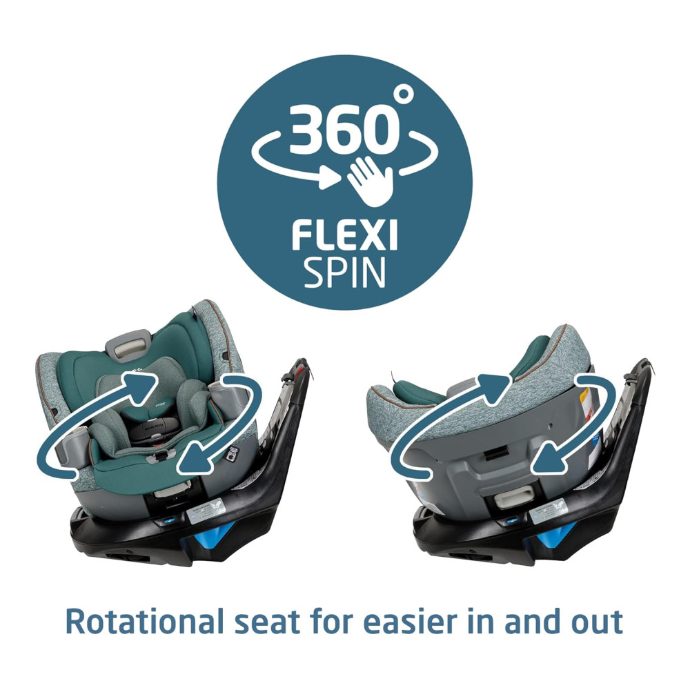 Apresentando o Emme 360TM com tecnologia 360 FlexiSpin, um assento de carro conversível projetado para acompanhar seu filho desde o nascimento até os 10 anos com conforto e segurança contínuos. A principal inovação deste modelo é o sistema rotacional 360 FlexiSpin, que facilita girar a cadeirinha para retirar seu filho com menos esforço, reduzindo o impacto nas costas dos pais.