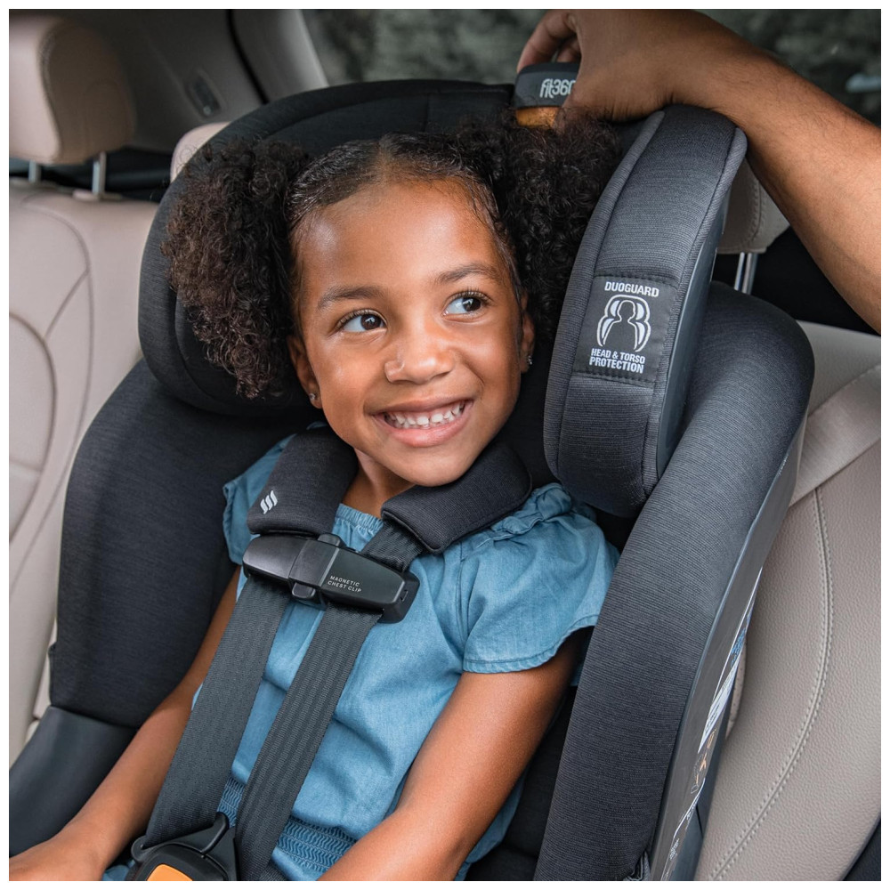 O Fit360 apresenta um sistema de arnês inovador chamado QuickSecure, que inclui um clipe magnético no peito, fivela FlexForward, apoio de cabeça EasyAdjust com 15 posições e arnês EasyLow. Esses recursos garantem que o ajuste seja rápido, seguro e confortável para o seu filho em todas as fases de crescimento.
