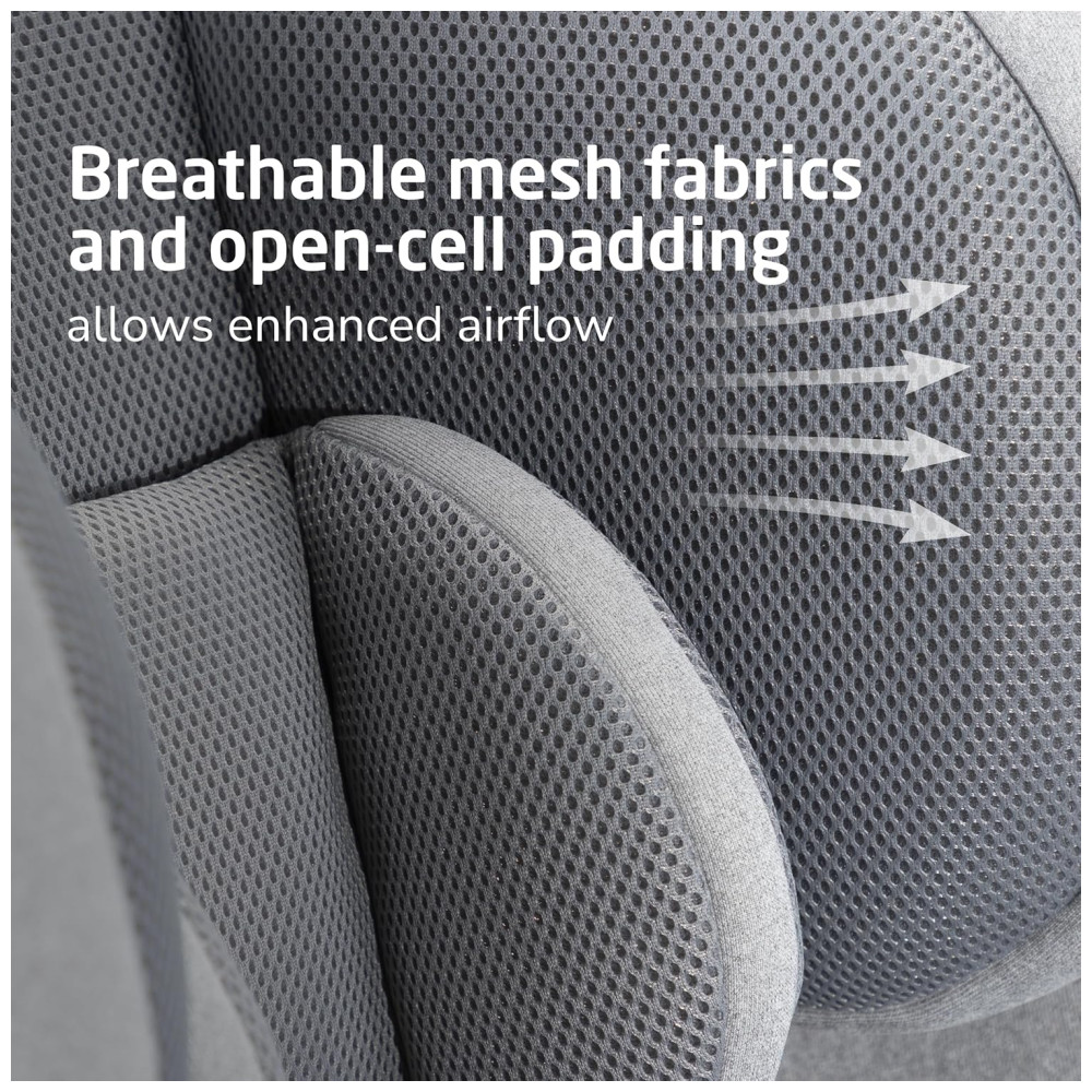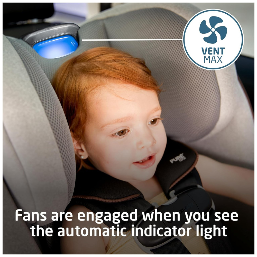 A Cadeira de Carro Mais Fresca da Cidade: O acolchoamento especial de células abertas e o tecido de malha macia e respirável proporcionam uma circulação de ar otimizada ao redor do seu filho. Com dois ventiladores na região lombar e um no encosto de cabeça, o Pria Chill oferece conforto incomparável para tornar cada passeio mais agradável.