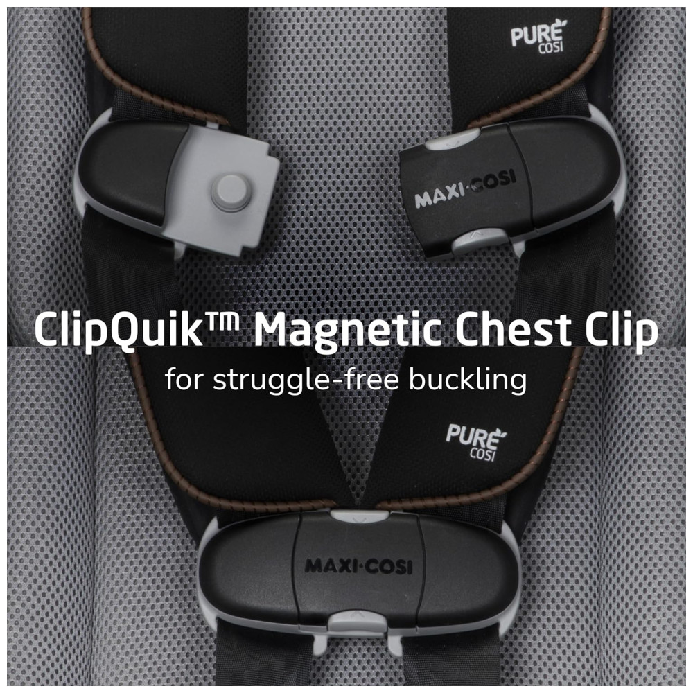 Entrada e Saída sem Complicações: Os suportes de arnês fáceis de entrar e sair facilitam a colocação e remoção do seu filho. O clipe magnético de tórax ClipQuik promove a liberdade de movimento sem emaranhados de tiras.