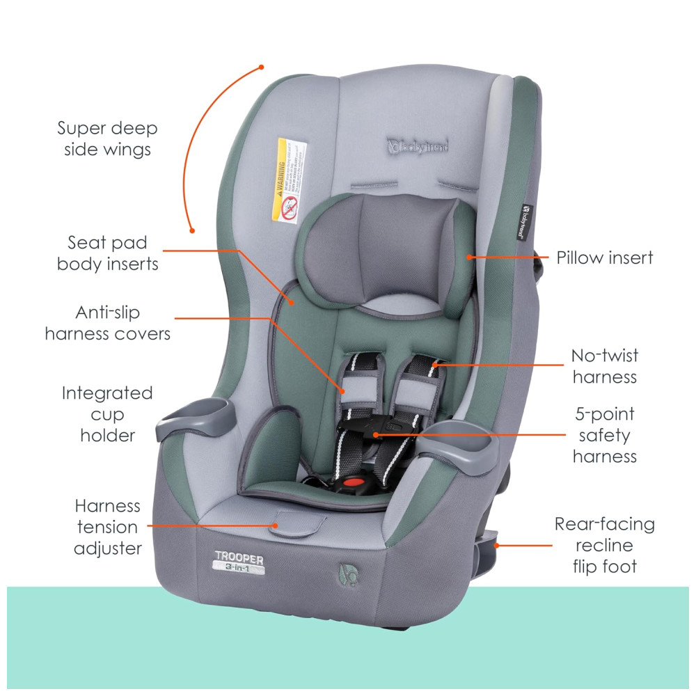 Cadeira de Bebê para Carro Conversível 3 em 1 para Crianças de 2 a 29 kg Baby Trend Trooper Verde e Cinza