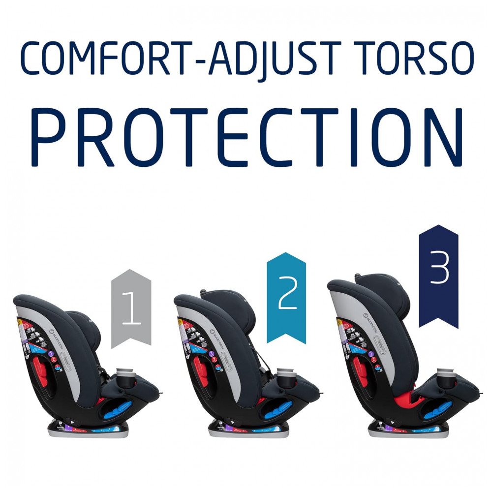 Com um design europeu luxuoso e completo, oferece proteção com uma reclinação de sete posições. Além disso, possui a única proteção de impacto lateral do torso ajustável, com três posições de altura do torso e 14 alturas de apoio de cabeça que elevam automaticamente o arnês para um ajuste ideal.