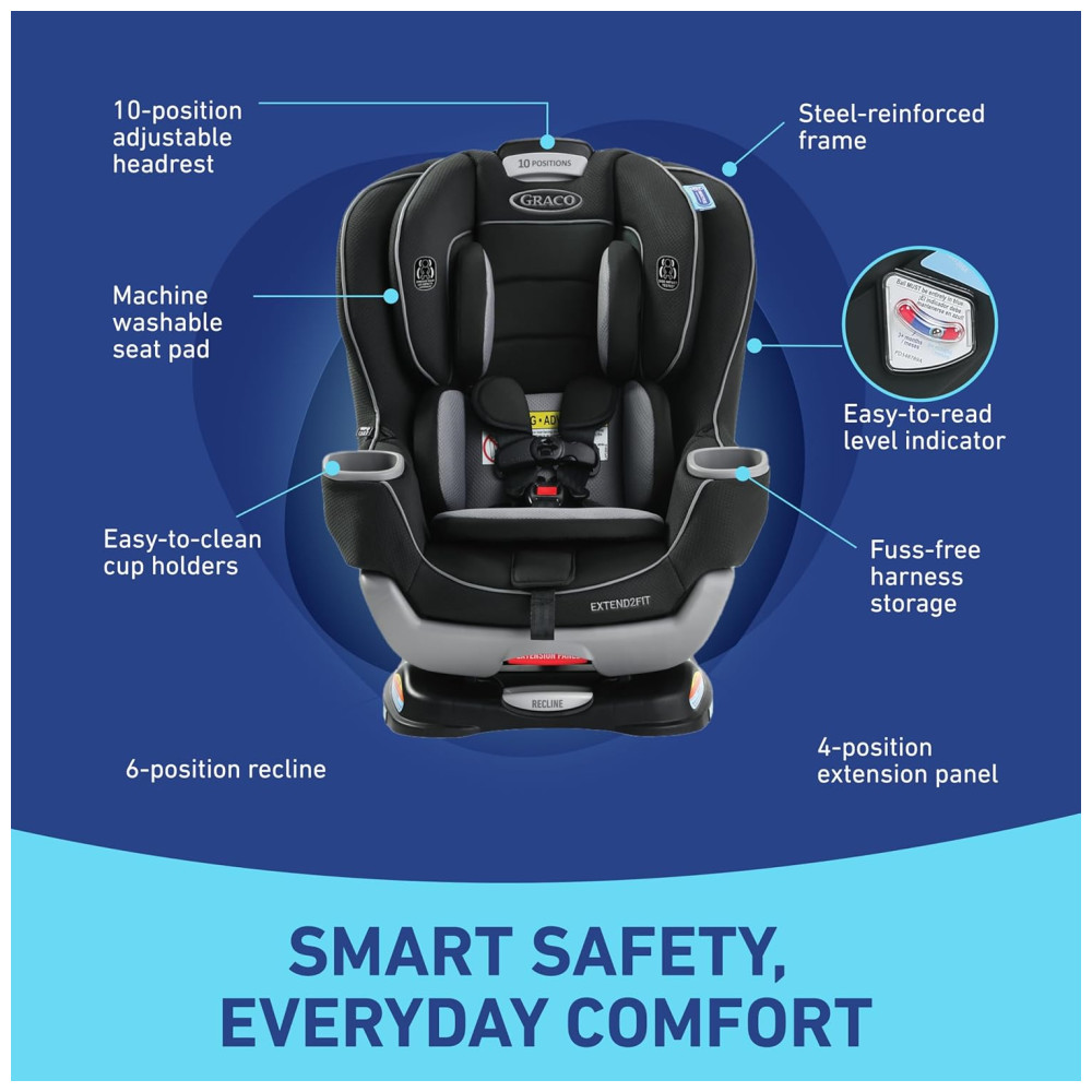 Extend2Fit painel de extensão ajustável de 4 posições fornece até espaço para as pernas adicional, permitindo que seu filho ande com segurança voltado para trás por mais tempo