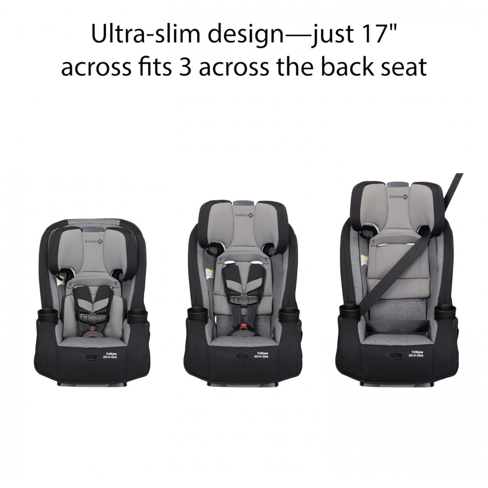 O design ultrafino do TriMate All in One Convertible Car Seat permite que os pais encaixem três no banco de trás sem sacrificar o conforto.
