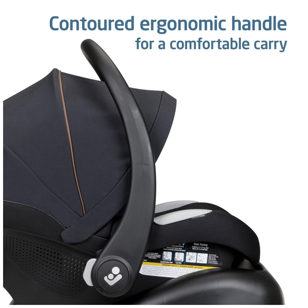 RECURSOS ADICIONAIS QUE VOCÊ VAI ADORAR Arnês de 5 pontos. Base ajustável para permanência no carro com 3 posições. Liberação com uma mão da base do assento do carro e do carrinho. Compatível com carrinhos Maxi-Cosi selecionados para um sistema de viagem completo. Assento avaliado em 1,81-13,61 quilogramas ou até 81,28 centímetros.