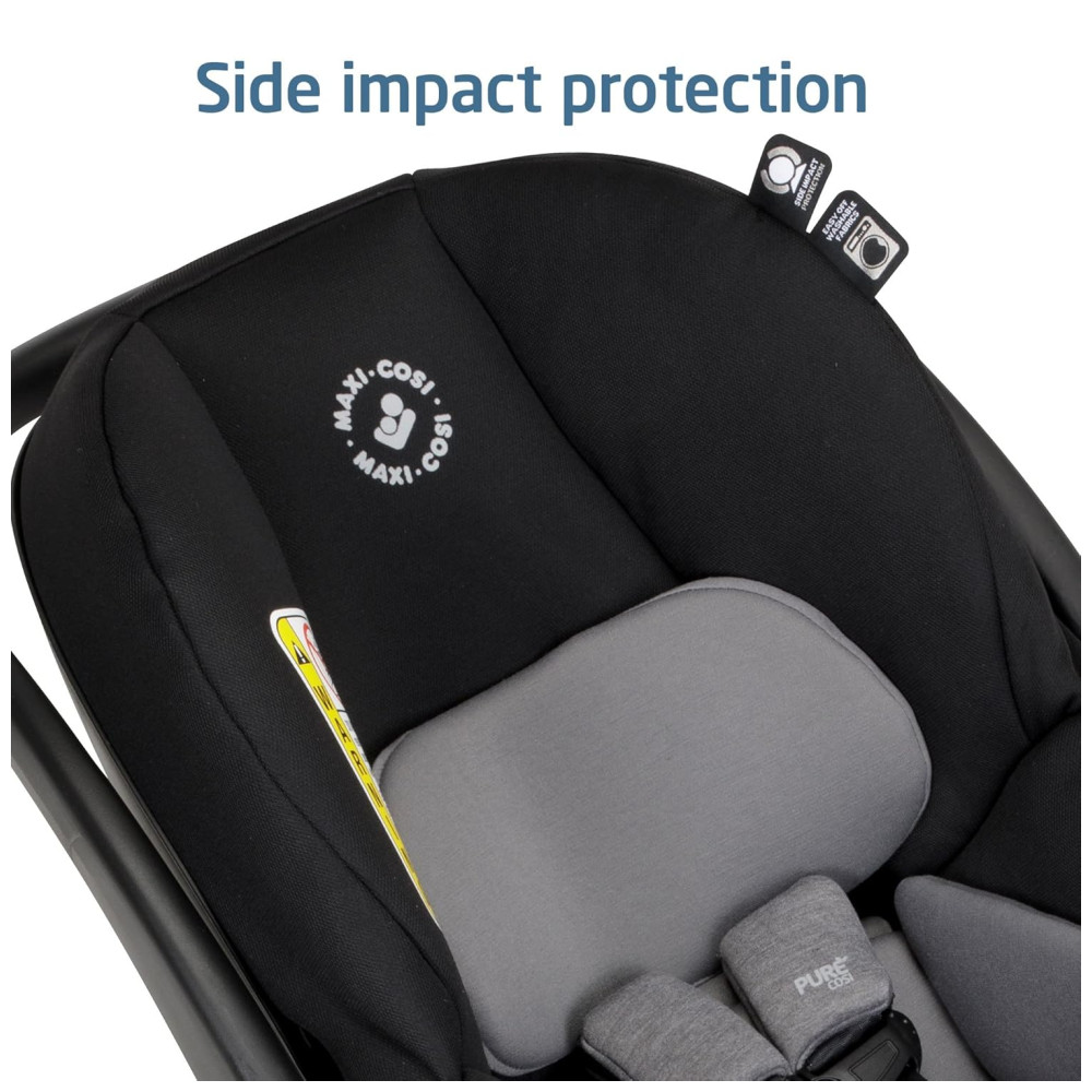 PROJETADO COM PURECOSI TM DA MAXI-COSI Os tecidos e espuma resistentes ao fogo PureCosi são feitos sem lã ou tratamentos retardadores de fogo adicionados, o que é melhor para o seu filho e para o nosso planeta. Todas as almofadas de assento de carro de tecido são laváveis na máquina e seguras para secar.