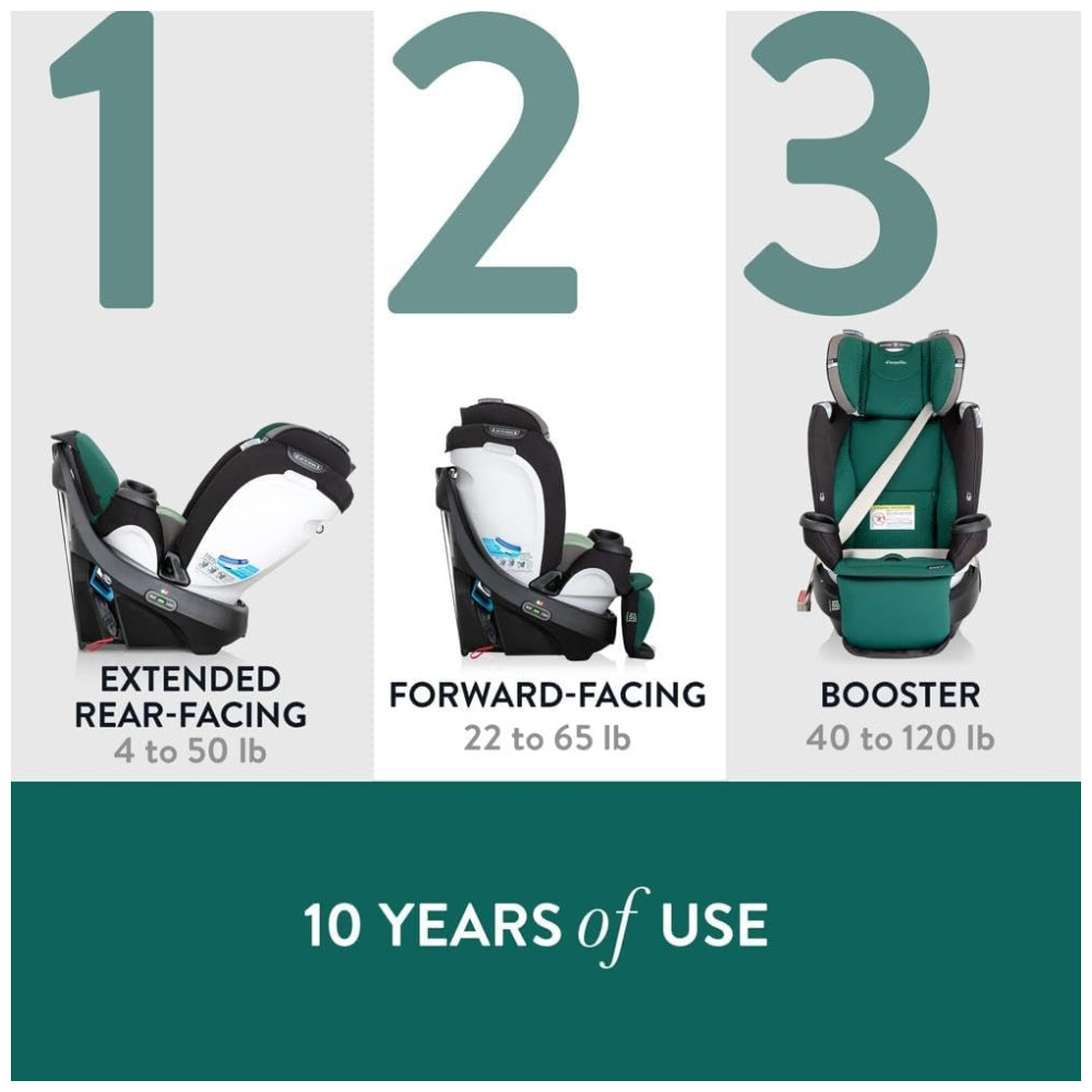 PROTEJA COM USO ESTENDIDO DE VOLTA PARA TRÁS: Permite que você mantenha seu filho voltado para trás por mais tempo, conforme recomendado por especialistas em segurança infantil – até 22,68 quilogramas. Inclui um apoio de pernas reversível e ergonômico que é acolchoado para adicionar conforto para pernas em crescimento.