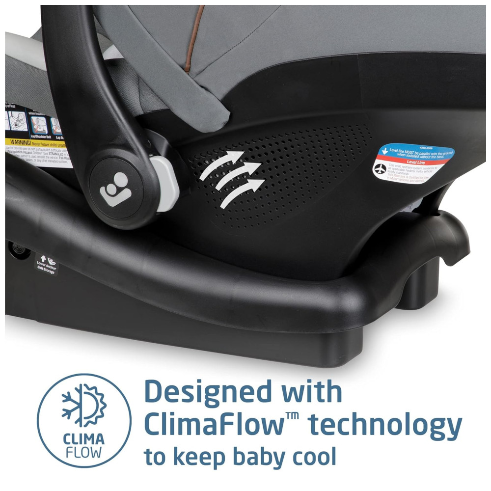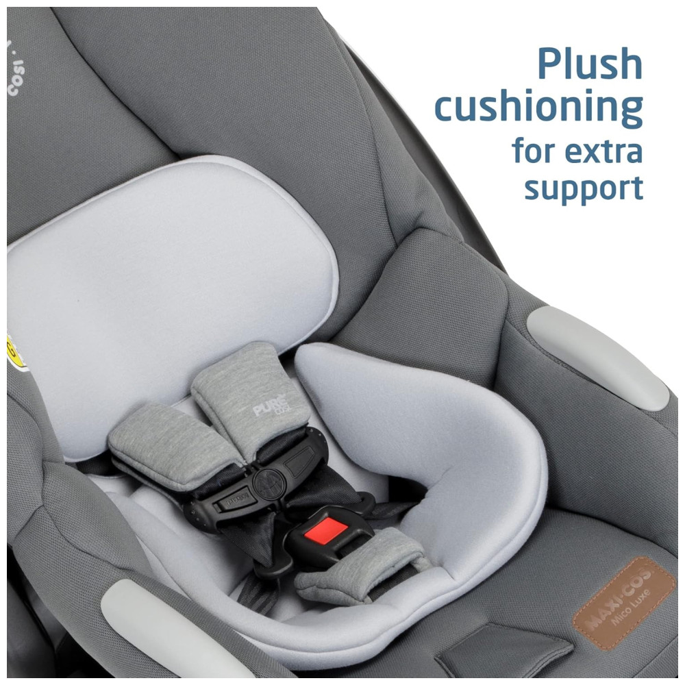 O acolchoamento extra de pelúcia na cabeça removível do bebê e nas inserções lombares garante um passeio confortável e seguro. Os tecidos e espuma resistentes ao fogo PureCosi são feitos sem lã ou tratamentos retardadores de fogo adicionados, o que é melhor para o seu filho e para o nosso planeta. A concha Mico Luxe foi projetada com a tecnologia ClimaFlow, proporcionando ventilação adicional para ajudar a manter seu bebê mais fresco.