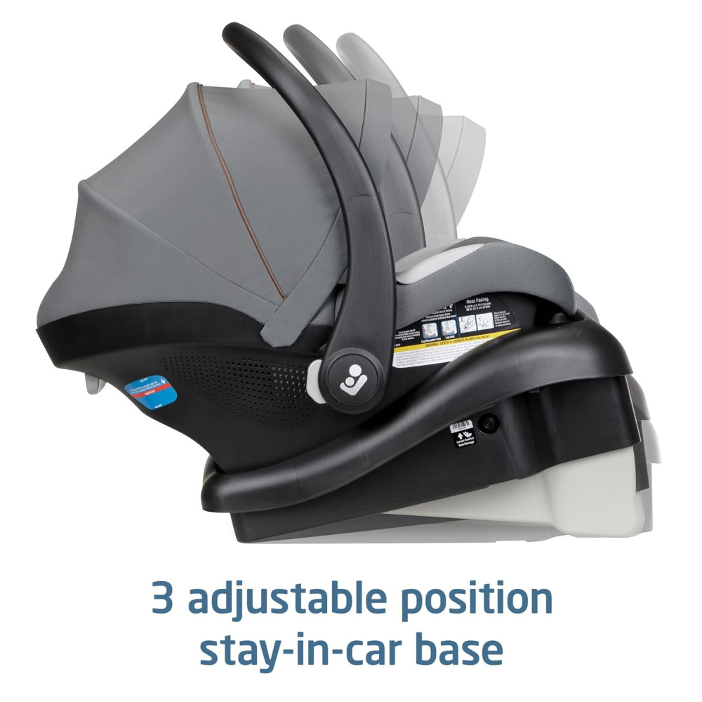 O assento conta com um arnês de 5 pontos, base ajustável Stay-in-car com 3 posições e liberação com 1 mão da base do assento do carro e do carrinho. É compatível com carrinhos MaxiCosi selecionados, oferecendo um sistema de viagem completo. O assento é avaliado para até 4 a 13 quilos ou até 81 cm.